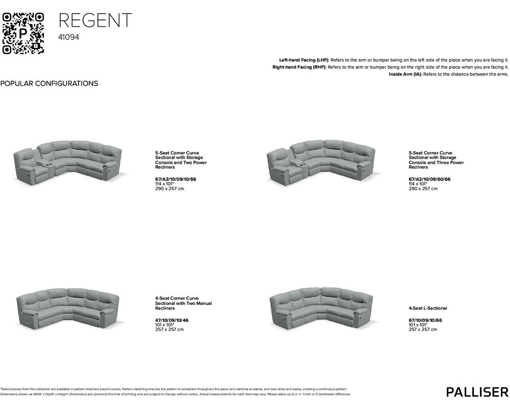 Introducing the Regent 41094 Reclining Sectional, the epitome of comfort and opulence. This stunning collection boasts plush arms, dual back cushions, and a full chaise footrest, delivering unparalleled support and relaxation. You can choose between manual or power activation for the reclining mechanism, allowing you to customize the sectional to your specific needs and preferences. Its timeless design makes it a perfect fit for any living room, adding a touch of sophistication and luxury. It will undoubtedly become the focal point of your space, exuding style and elegance. Crafted with the utmost attention to detail, the Regent offers superior comfort and quality, providing the perfect spot to unwind and rejuvenate.