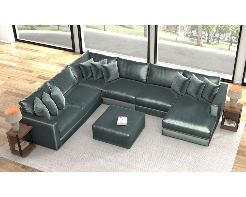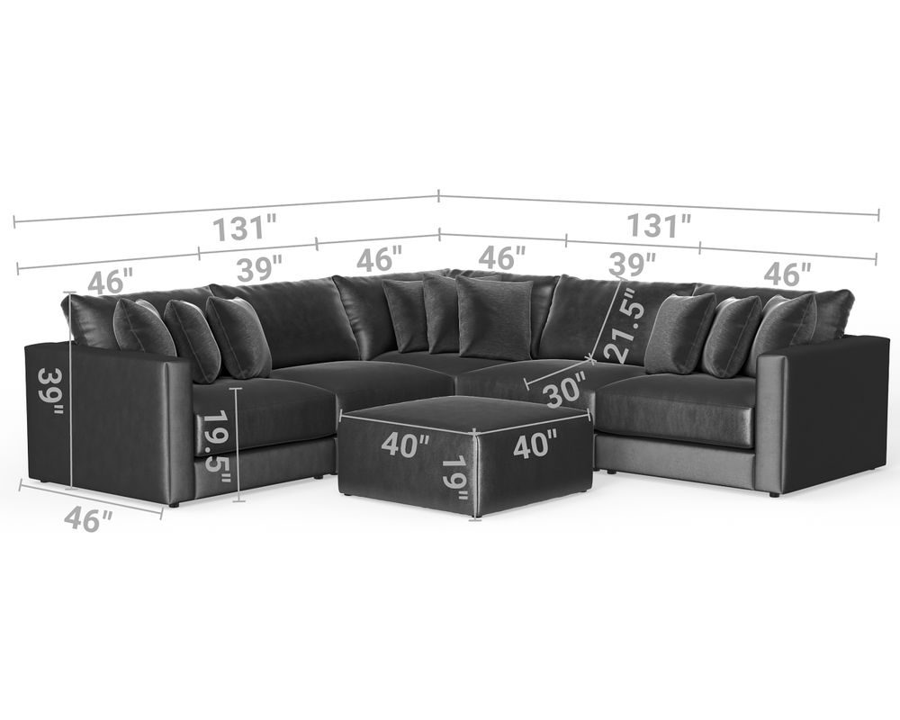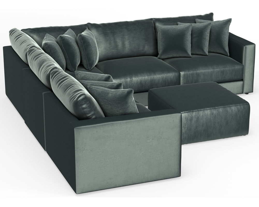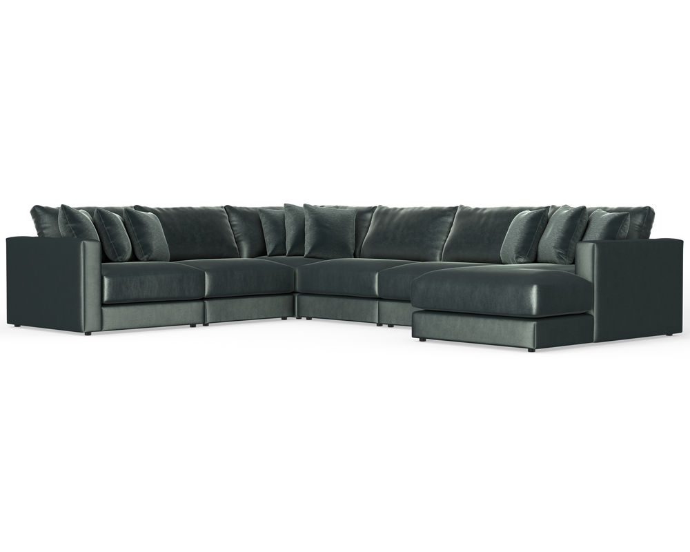 The Remington Sectional, with its deep seat, provides ample space for you and your loved ones to lounge on. The loose back cushions allow for easy adjustment, making it versatile and adaptable to your comfort needs. The luxurious velvet fabric gives the sectional a lavish touch, making it a statement piece in any living room or entertainment area.