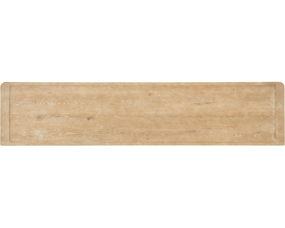 Crafted with high-quality materials, the Retreat Entertainment Credenza is built to last. It features a sand-colored Dune finish, carefully chosen to mimic the natural colors of sand and enhance the grain patterns of the Oak Veneers. This transparent finish not only adds to the credenza's aesthetic appeal but also allows for the unique grain patterns of the wood to be showcased.