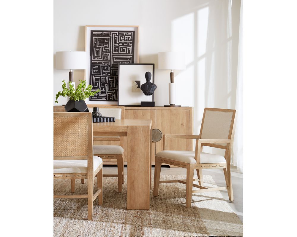 But that's not all. A few pops of accent finishes called Seagrass and Lagoon can be found on select pieces, enhancing the tropical mood of the collection. Modern Zen delivers a tranquil personality with a contemporary twist that showcases the Dune finish, enhanced with accent items in Black Sand. Several pieces incorporate woven cane, dramatic split bamboo-inspired accents, and Travertine stone. This collection is not just about style, it's about versatility. Highlights include a woven cane panel bed with clean, modern lines and various case pieces featuring geometric patterns and spa-inspired accents. Upholstered stationary and accent seating – available in sage and caramel tone leathers – complete the Zen narrative. Adding the finishing touch, the collection’s hardware is custom-designed to match each personality. Look for reed-inspired designs in Island Oasis and gently textured designs in Modern Zen. Both hardware options are featured in a soft pewter-plated finish.