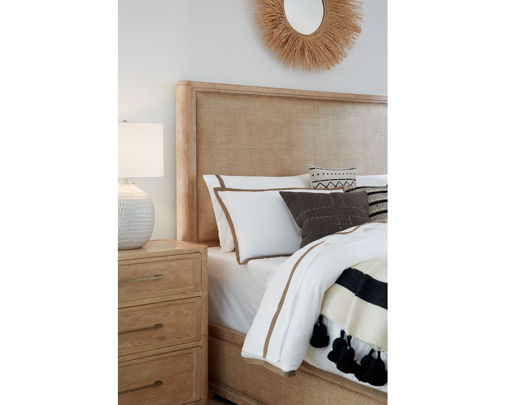 The Retreat Raffia Panel Bed is expertly constructed with premium wood and features elegant cane panel inserts. High-quality materials ensure durability and longevity, making it an excellent investment for your bedroom. The sand-colored Dune finish adds a touch of warmth and sophistication to the overall design.