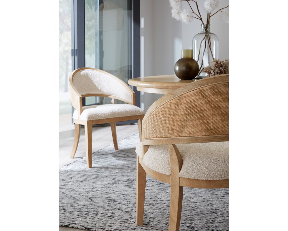 Crafted with high-quality materials, the Retreat Chair features a unique barrel-style back silhouette that exudes sophistication. The chair frame is finished in a beautiful sand-colored Dune, creating a warm and inviting look. The combination of wood, cane, and fabric adds a touch of organic charm to the design, making it a perfect fit for traditional and contemporary interiors.