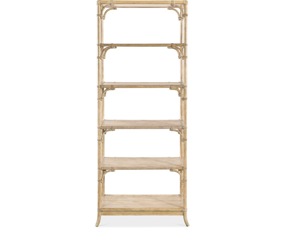From Sofas and Sectionals.com: Introduce a touch of tropical charm and casual elegance to your home with the Retreat Pole Rattan Bookcase. Made with high-quality Oak Veneers, this bookcase features a stunning Bamboo motif and rope accents, giving it a natural and organic look. The bookcase is carefully crafted and finished on all sides, making it a versatile piece that can be placed anywhere in your living space. It has five fixed shelves, providing ample storage space for your books, decorative items, and other essentials. The bookcase is beautifully finished in a sand-colored Dune hue, which adds to its aesthetic appeal and allows the wood veneer's unique grain patterns to shine through. Upgrade your home decor with the Retreat Pole Rattan Bookcase and add a touch of tropical bliss to your living space.