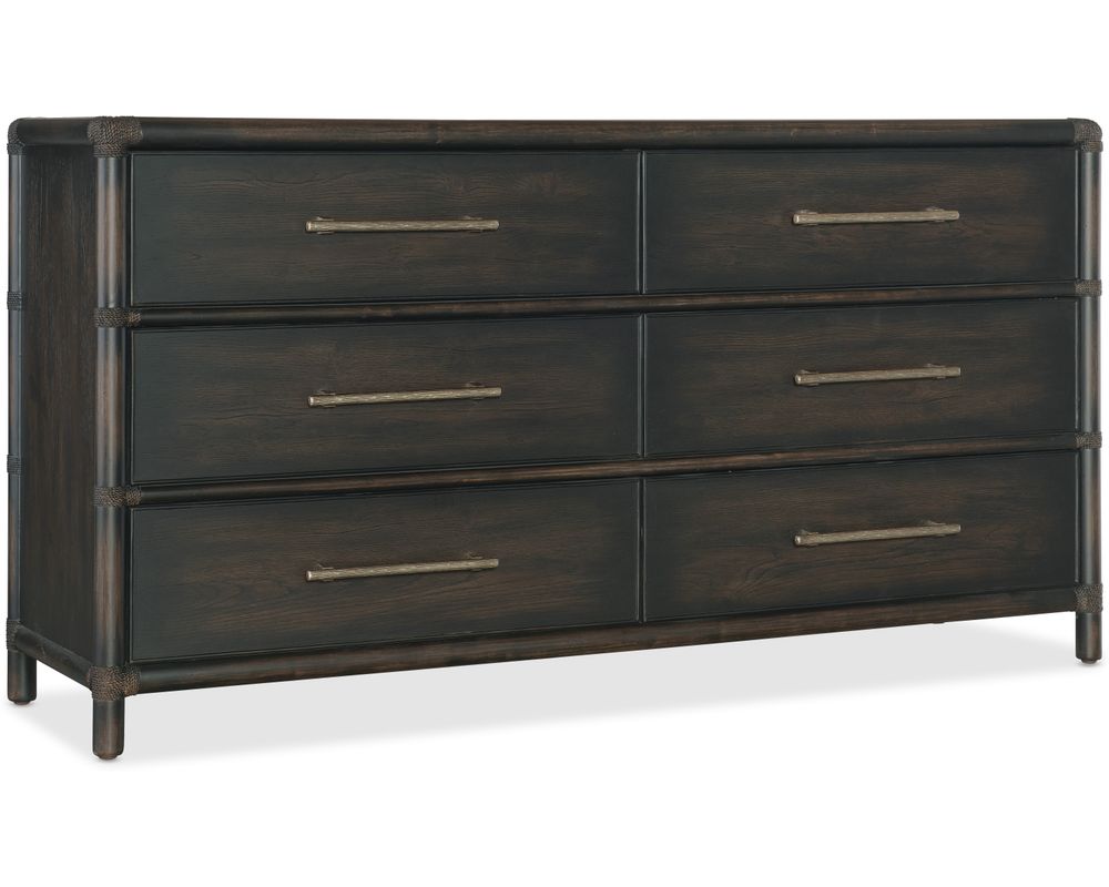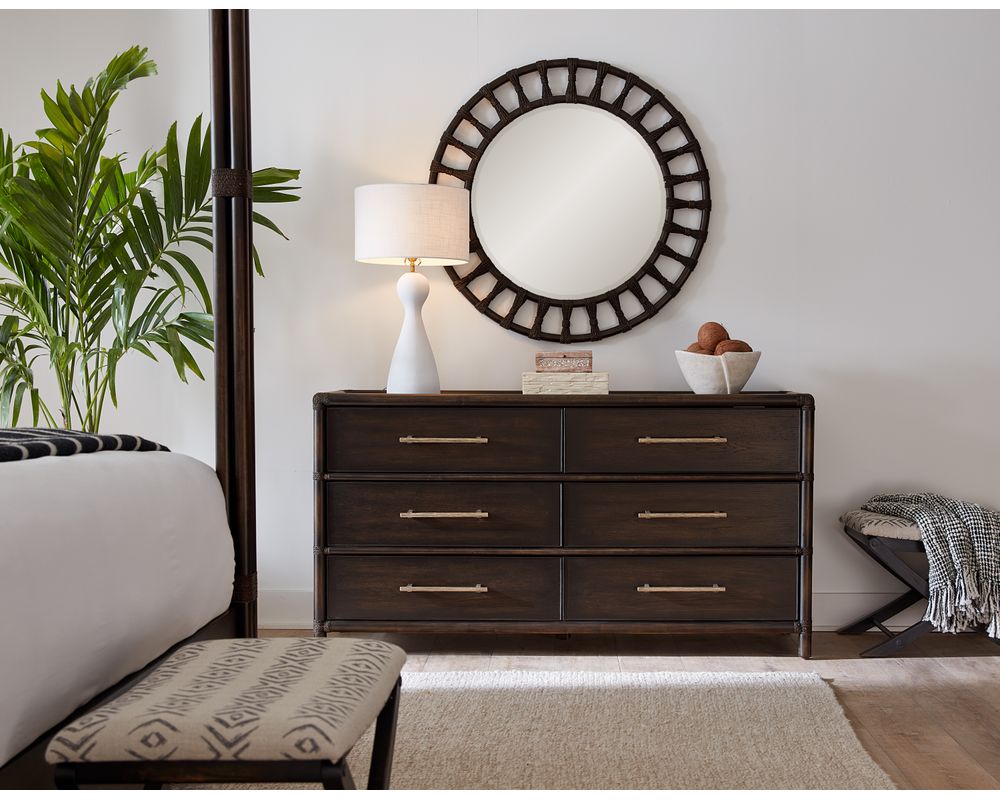 From Sofas and Sectionals.com: Take a piece of the tropical paradise home with the Retreat Pole Rattan Dresser. This stunning piece of furniture perfectly blends natural materials and versatile design, making it a must-have for any home. Crafted with oak, maple veneers, and Rope accents, this dresser exudes a relaxed and laid-back vibe.