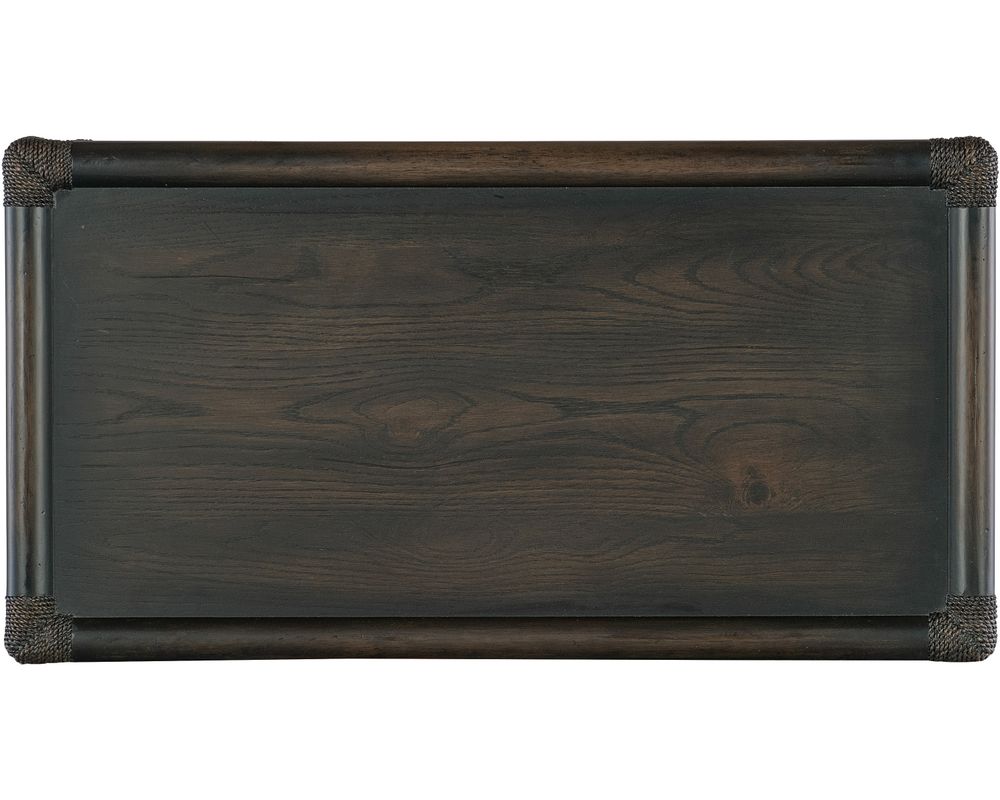 From Sofas and Sectionals.com: Retreat is crafted with flat-cut cathedral oak veneers and is characterized by two distinct finishes. Each finish is transparent by design to showcase the unique grain patterns of the veneer. Dune is light as sand and smooth as a shore after a receding tide. The second finish, Black Sand, was inspired by the black silk sands on the shorelines of the exotic beaches of Maui and Tahiti. Inspired by serene, tropical resort destinations that offer an escape from the pressures of modern life, Retreat is designed to help consumers replicate these peaceful and tranquil environments within their homes. The collection can be curated into two distinct personalities: Island Oasis and Modern Zen. Island Oasis intermingles both finishes, creating a tropical retreat-inspired vibe accentuated with organic details such as rope, cane, travertine, and woven accents.