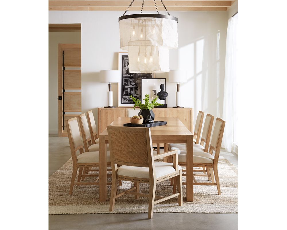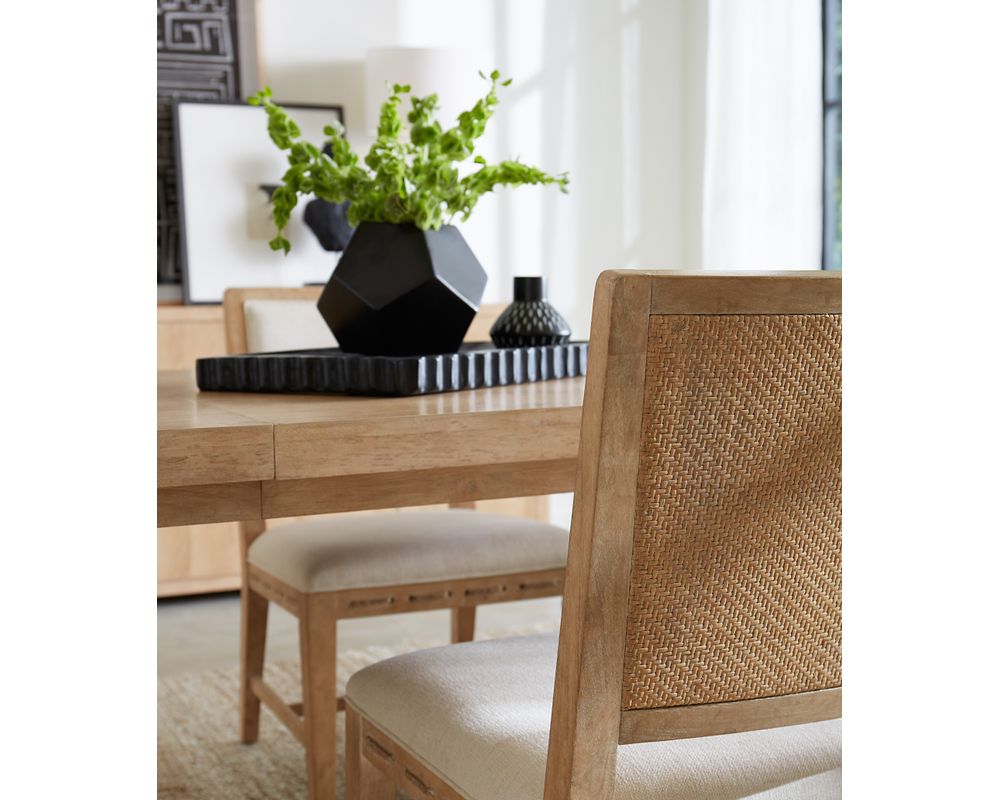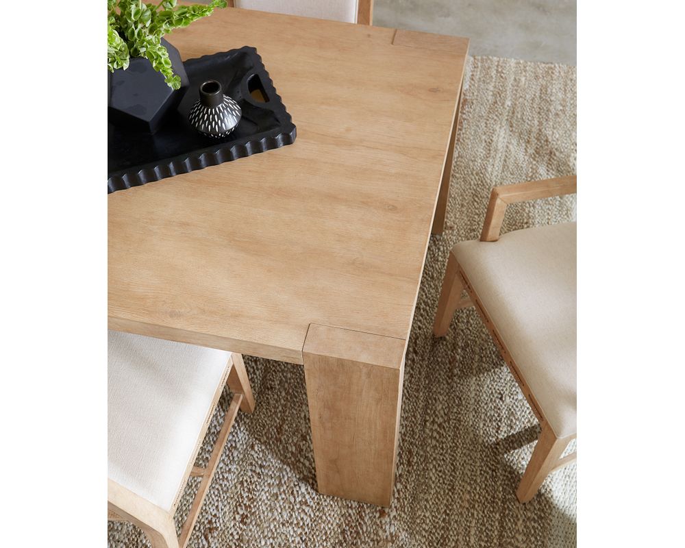The Retreat Rectangle Dining Table also offers versatility with its one 22-inch leaf. When the leaf is in place, the table extends to 110 inches, comfortably accommodating up to 8 armchairs and 10 coordinating side chairs. Without the leaf, it can still accommodate up to 6 armchairs and 8 coordinating side chairs, making it perfect for smaller and larger gatherings.