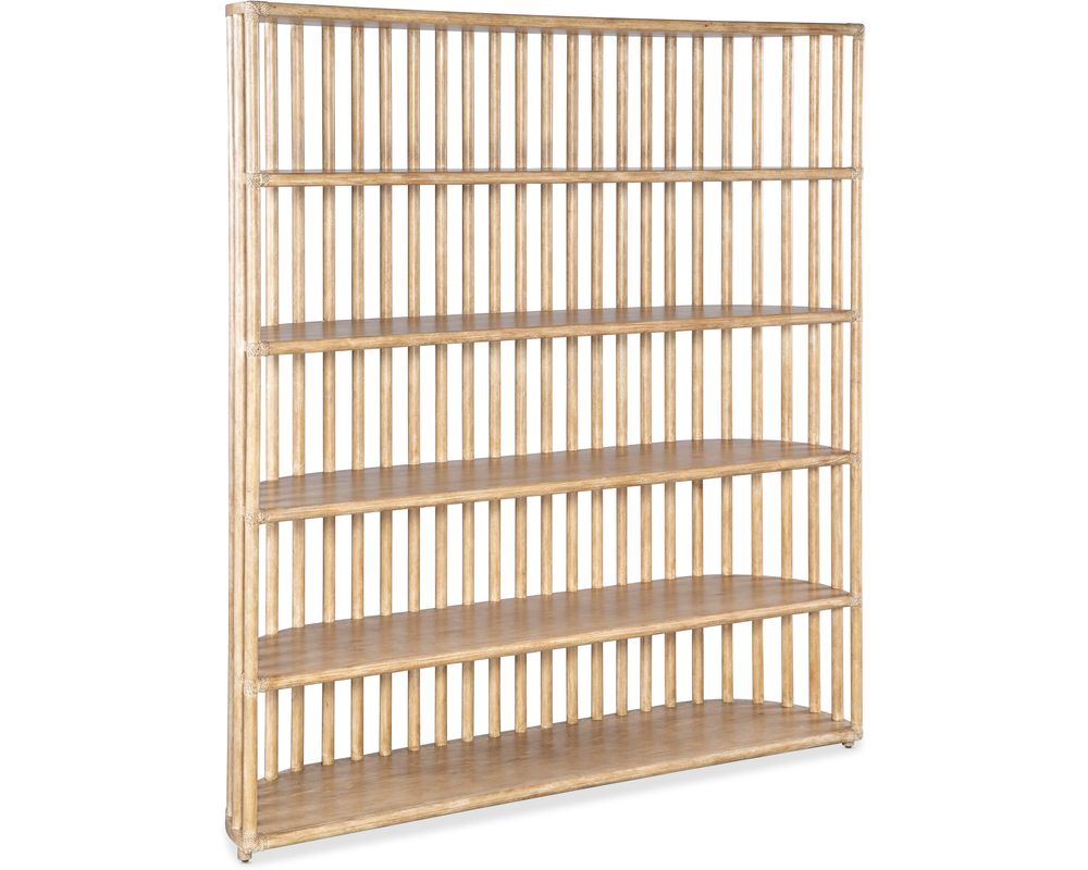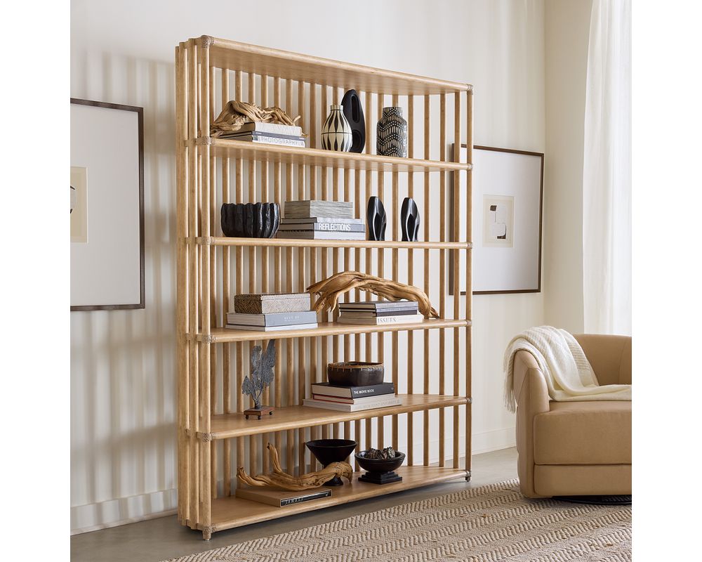 The Retreat Slatted Bookcase offers functionality and adds a touch of elegance to your space. The slatted back and curved sides make it look eye-catching, while the rope accents add a charming detail. It is finished on all sides, making it perfect for floating in a room and adding a touch of sophistication to any corner.