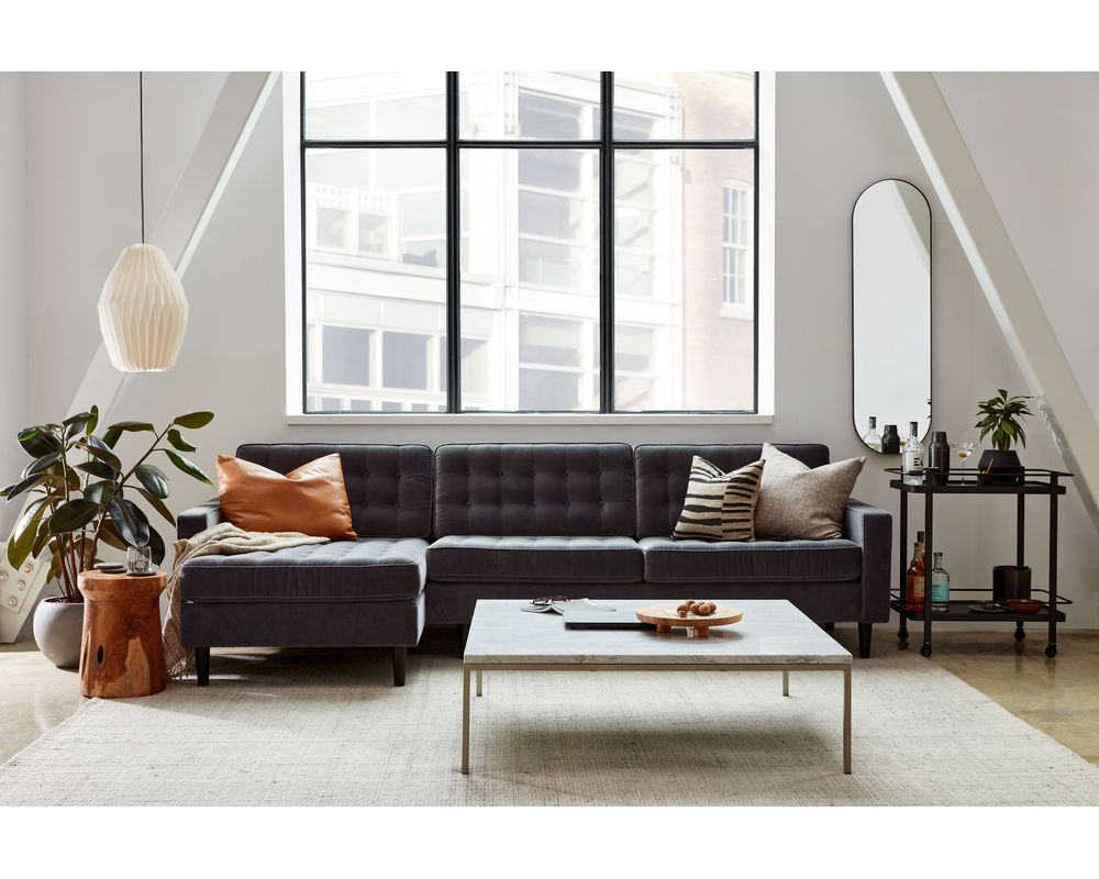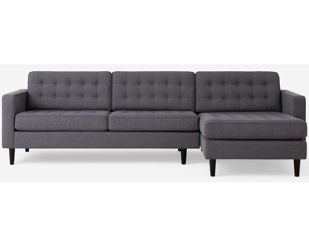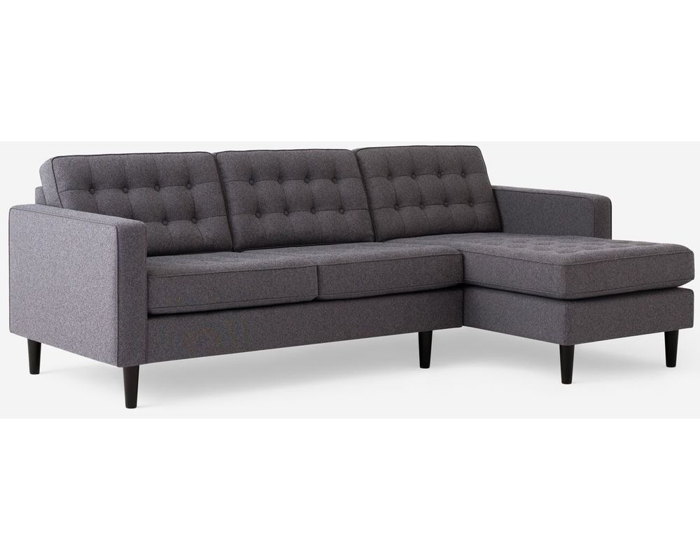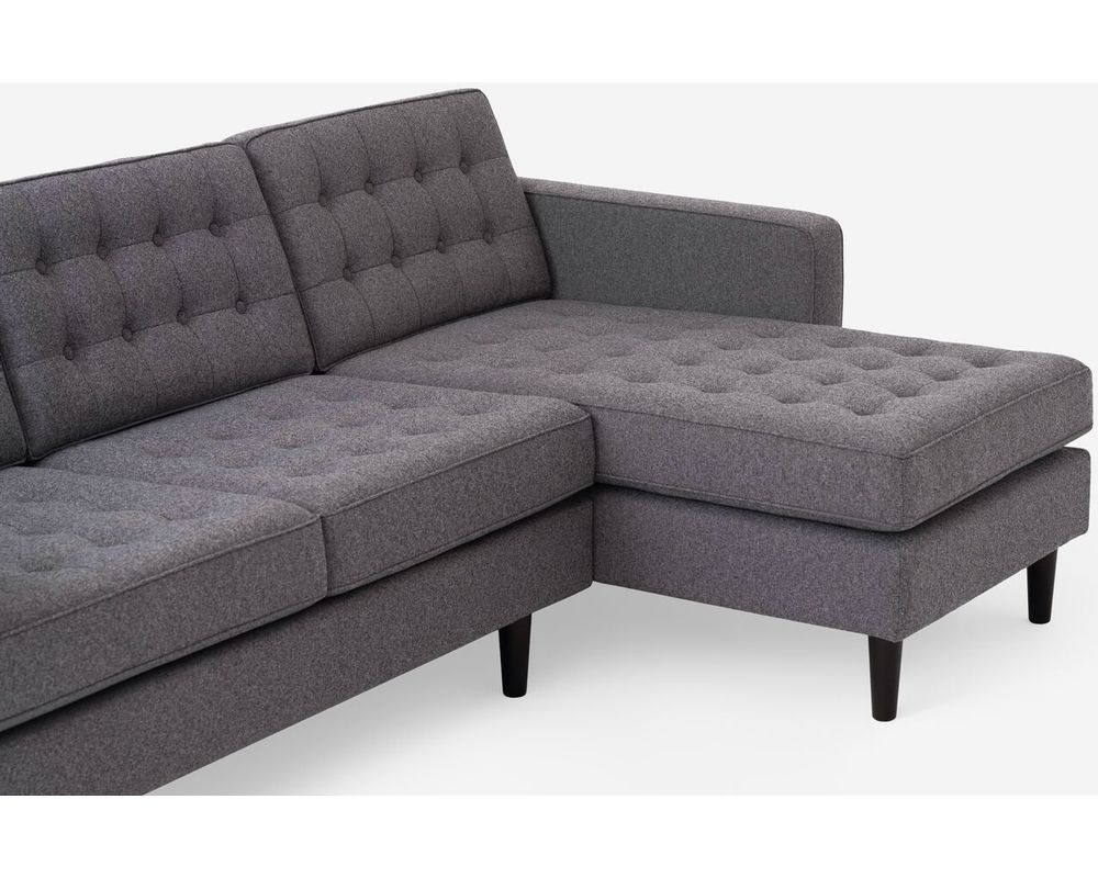 Introducing the Reverie 77157 Sectional by EQ3, a unique blend of comfort and style. This mid-century modern-style sofa, with its button-tufted seating and back, adds a touch of elegance to any living space.