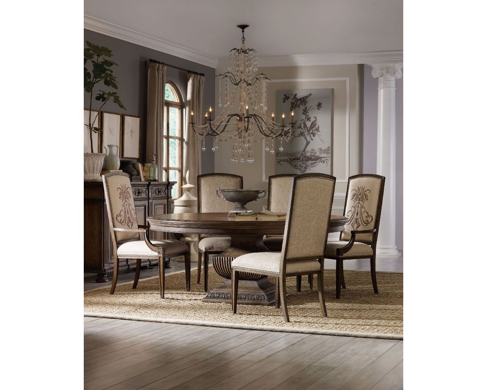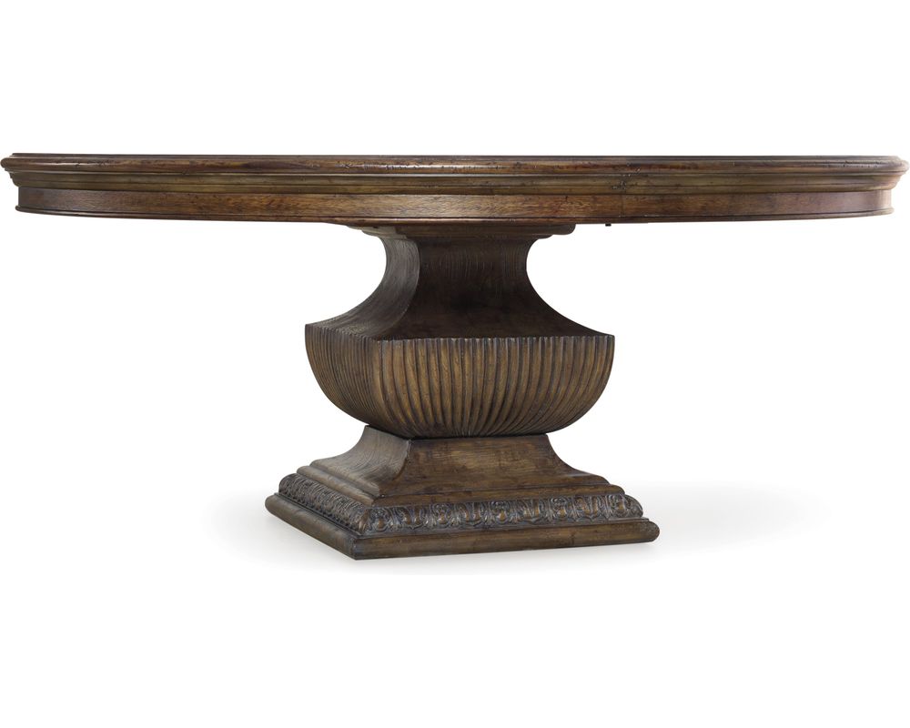 Rhapsody 60 or 72" in. Round Dining Table The groundbreaking Rhapsody Collection brings together classic design elements, grand scale, and a relaxed rustic finish to create an impassioned marriage of casual opulence. Exuberant scale and serpentine shapes infuse the pieces with emotion, while timeless motifs like scrolls, rope twist molding, the acanthus leaf and fleur de lis anchor Rhapsody in old world charm. Building on the grand scale and classic European design is the defining element of the collection: a walnut-colored finish inspired by the natural yet rustic nature of reclaimed woods in beautiful patinas.