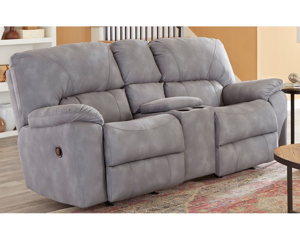 The Rhino Reclining Console Loveseat offers oversized relaxation and convenient functionality, making it the perfect upgrade for your living space. Featuring plush pad-over chaise seating, pillow-topped arms, and flat welt accents, this loveseat delivers all-day comfort. The built-in center console provides hidden storage and dual cupholders, keeping your essentials close and your space organized. Upholstered in a leather-like fabric that’s easy to care for and built to last, the Rhino is proudly crafted in the USA by Motion Ease with quality you can rely on.