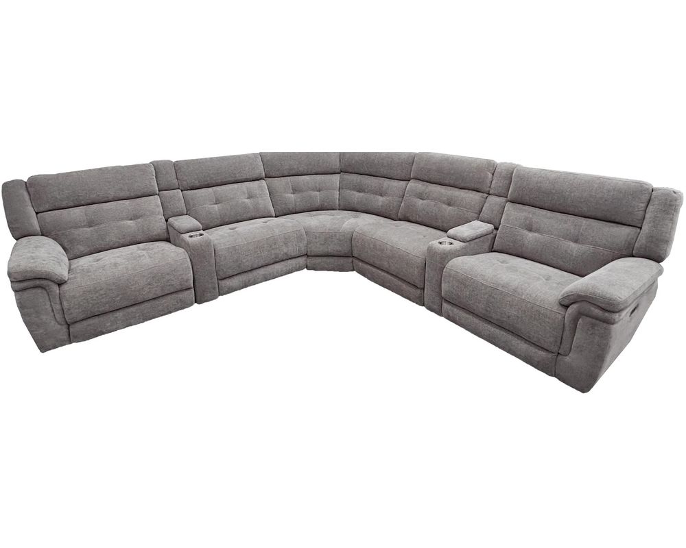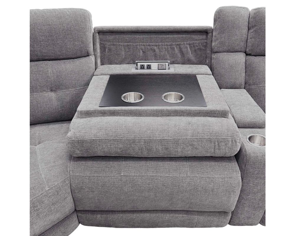 Introducing the ultimate in comfort and style: the Richland Power Headrest Power Reclining Sectional from the prestigious Richland Collection by Parker Living. This stunning modular sectional boasts a sleek and sophisticated design, making it a perfect addition to any living space. Crafted with clean lines and transitional styling, it will enhance the overall aesthetic of your home.