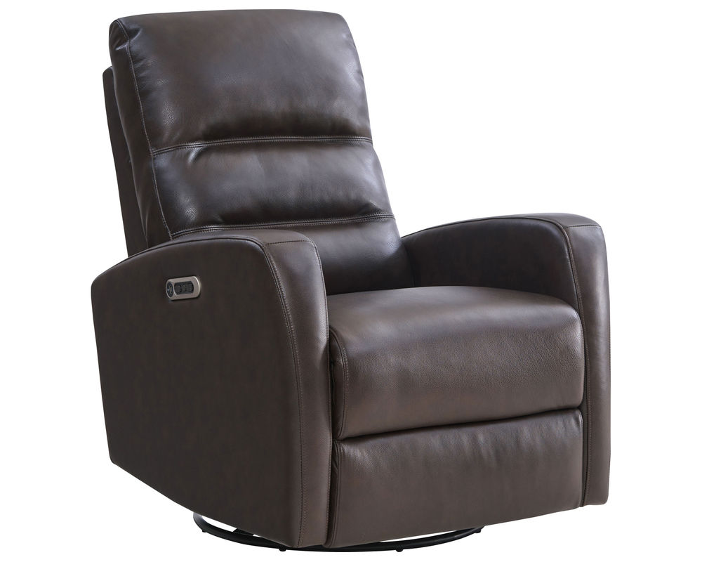 It's hard to stay awake when you're in the comfy embrace of the Ringo power swivel glider recliner. Its buttery soft, top-grain leather in Florence Brown highlights its sophisticated silhouette and tailored appeal. 100% Genuine Top-Grain Leather Everywhere Your Body Touches.