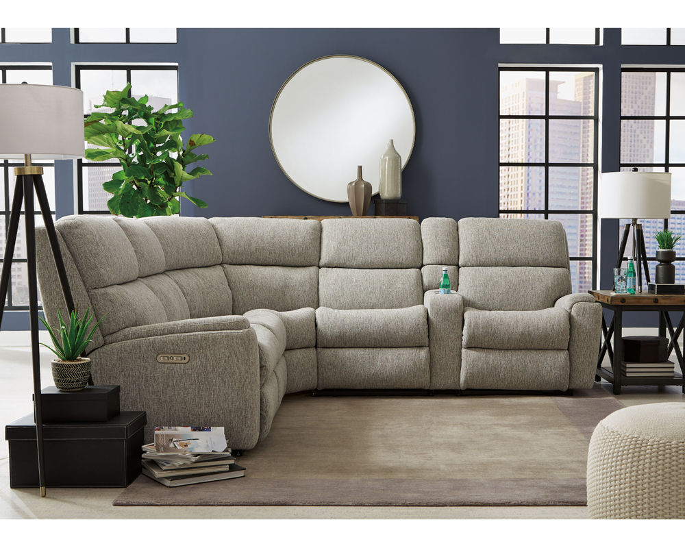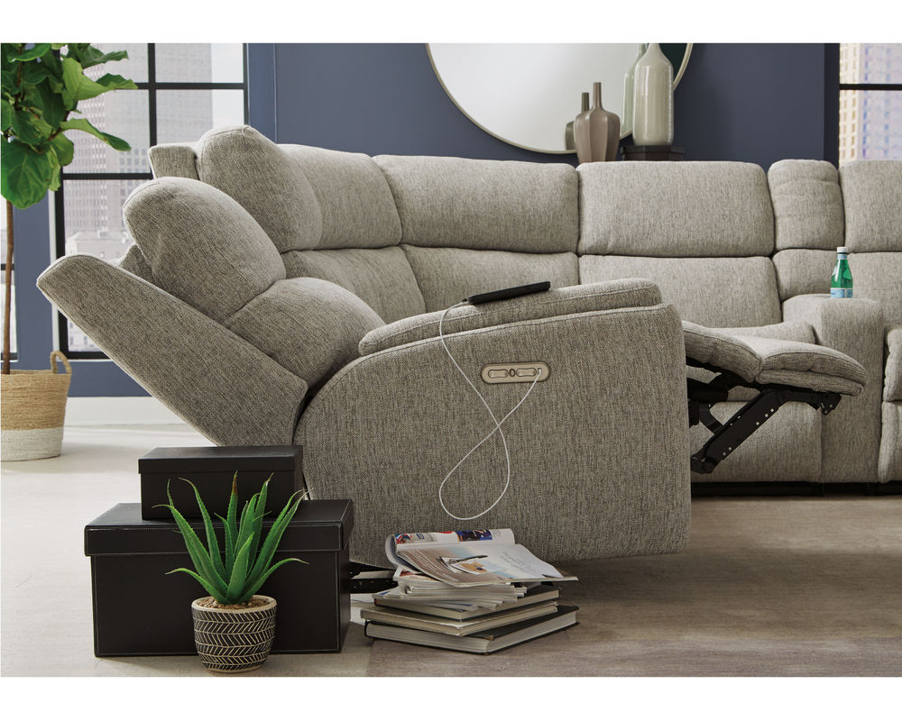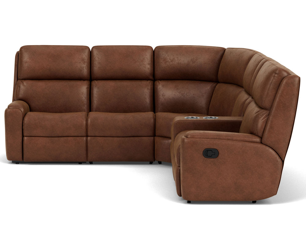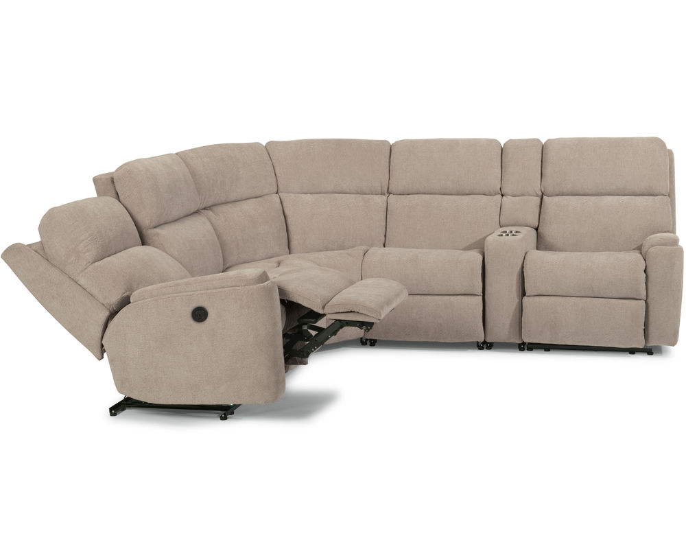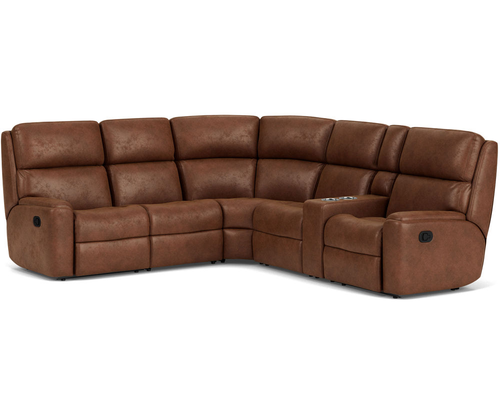 The Rio Reclining Sectional is the perfect choice for creating a relaxing evening at home. The sectional is upholstered in a durable fabric and features an easy-to-use parachute release for adjusting the footrests and recline. It also has a convenient storage console, so you never have to worry about misplacing the remote. The simple design has a contemporary aesthetic with plush divided back cushions that provide neck-to-lower-lumbar support. The inset padded armrests have a refined look and take the pressure off tired forearms. Our patented Flexsteel DualFlex Spring Systemâ„¢ ensures years of flexibility and firmness as you sit. With over 250 fabric options to choose from, including highly durable, cleanable high-performance textiles, you can select the perfect sectional to complement your home.