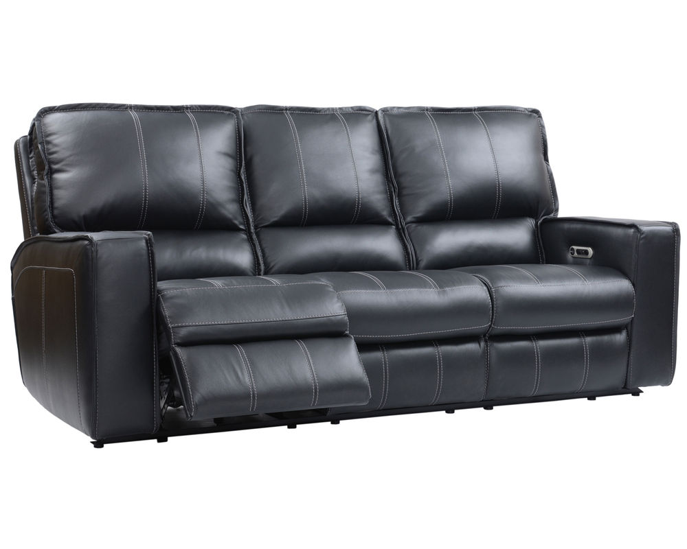 • Reclining sofa features three recliners with power recline and power headrests