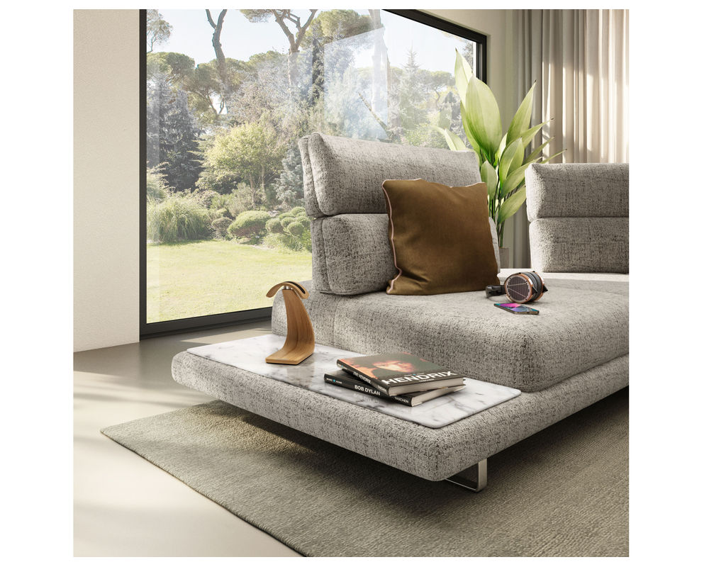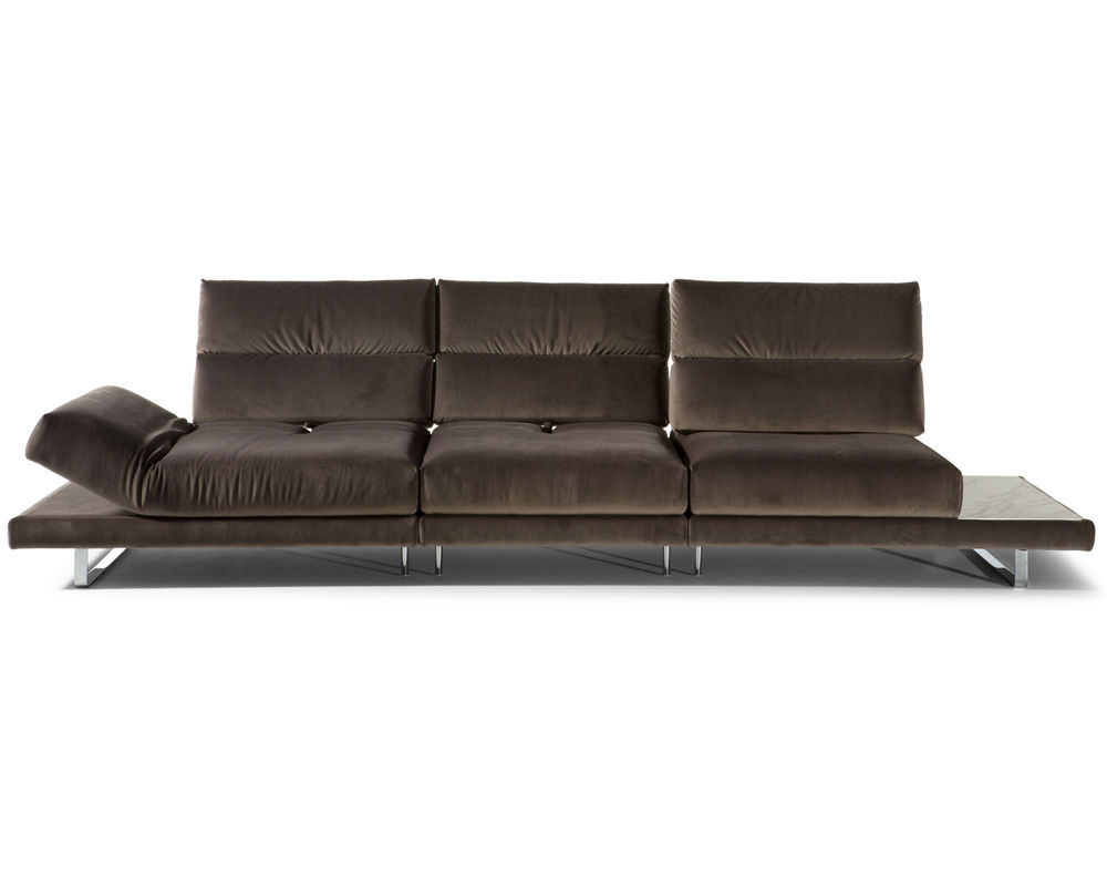 But that's not all – the Roma C257 Sofa is a statement of elegance and modern sophistication. The ceramic side top in a chic jazz white finish adds a touch of class to your living space. The selection of leather or fabric options, each with two distinct stitching patterns on the back and seat that can be combined for a unique look, allows you to personalize your sofa to match your style. The metal legs, finished with a glossy chrome coating, add a touch of modern sophistication, elevating the grandeur of your living room.