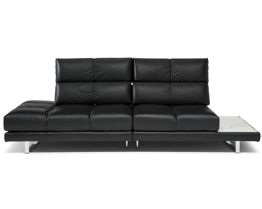 But that's not all – the Roma C257 Sofa is a statement of elegance and modern sophistication. The ceramic side top in a chic jazz white finish adds a touch of class to your living space. The selection of leather or fabric options, each with two distinct stitching patterns on the back and seat that can be combined for a unique look, allows you to personalize your sofa to match your style. The metal legs, finished with a glossy chrome coating, add a touch of modern sophistication, elevating the grandeur of your living room.