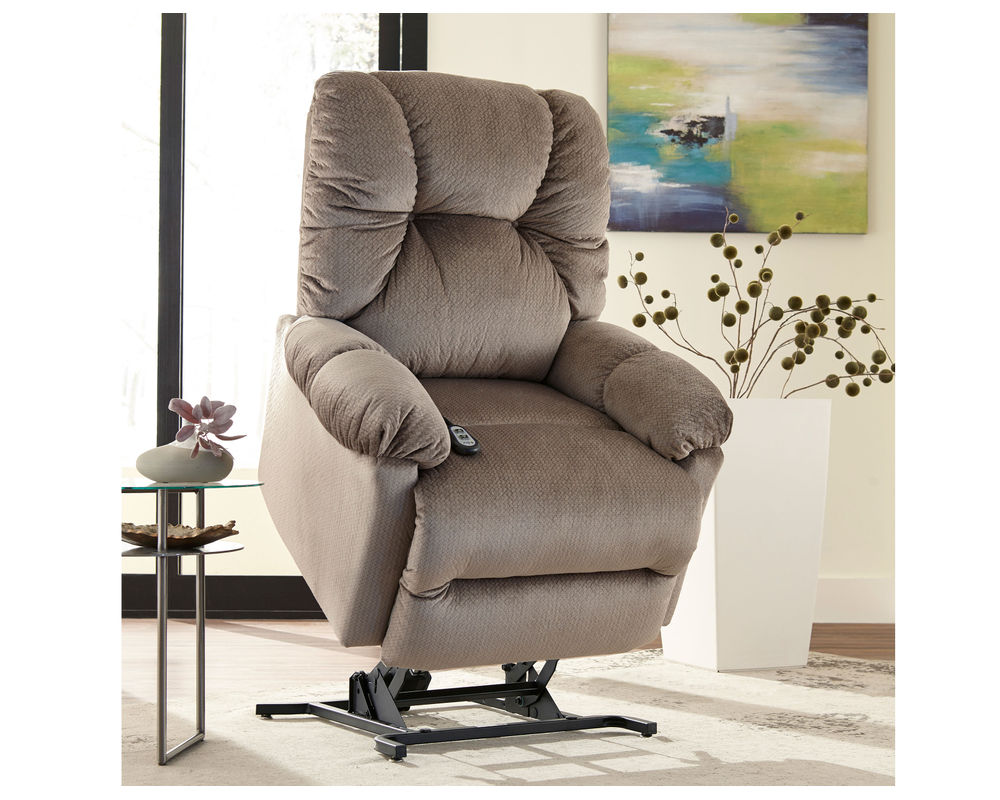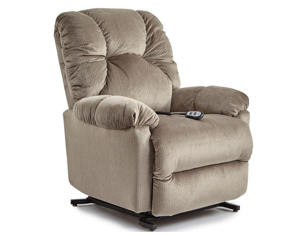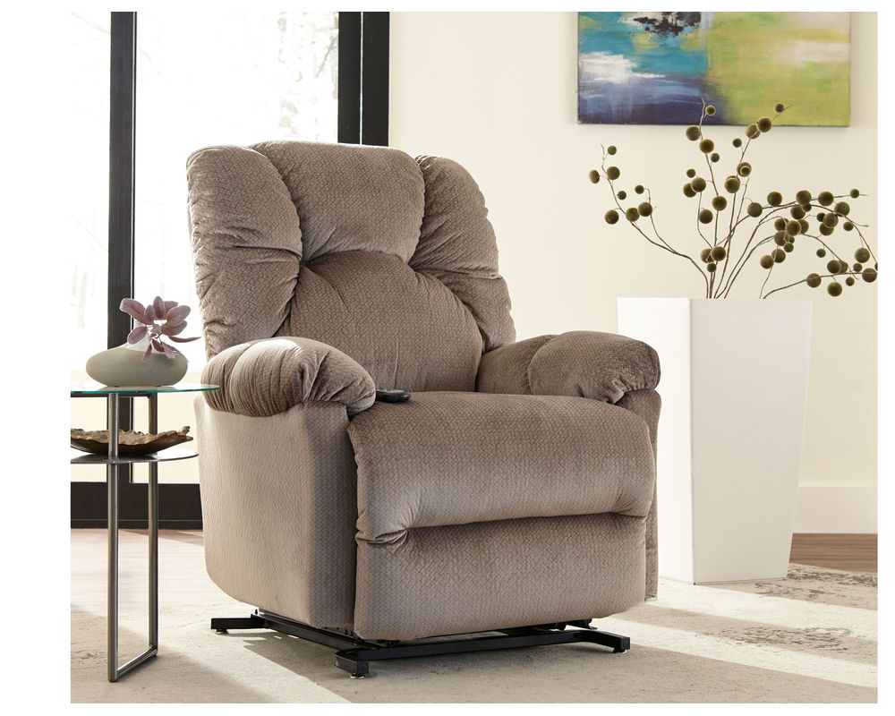 Introducing the Romulus 9MW51 Power Lift Recliner by Best Home Furnishings, the epitome of comfort. This recliner is designed to provide you with ultimate comfort and support. The armrests and back are overstuffed with premium cushioning fibers, providing you with a pillow-like feel. The padded chaise kickout features Performa-Weave technology, offering head-to-toe comfort and cooling support. The frame of this recliner is constructed with kiln dried hardwoods and assembled with double doweled joints that are reinforced with glue, staples, screws and truss plates. This ensures that this recliner is built tough and able to withstand years of use. So, if you’re looking for a luxurious recliner that not only offers comfort but also durability, then the Romulus 9MW51 Power Lift Recliner is the perfect choice for you.