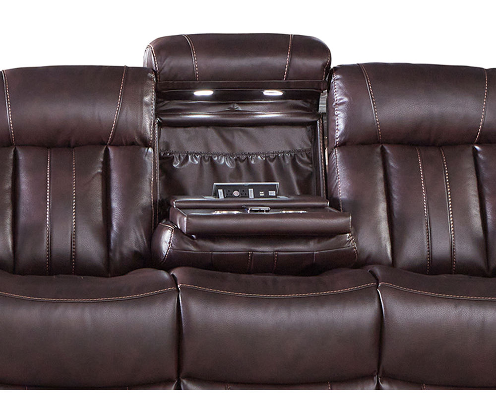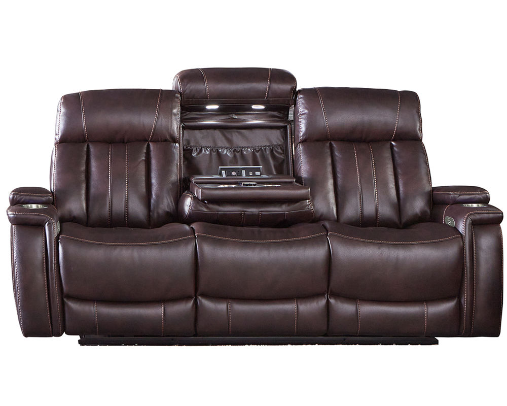 The Royce sofa is a hub of innovation. It features a drop-down console with AC, USB, and a wireless charging pad, creating the perfect spot to work or relax without worrying about outlet proximity. The overhead lights add a touch of ambiance, setting the stage for movie nights or late-night reading.
