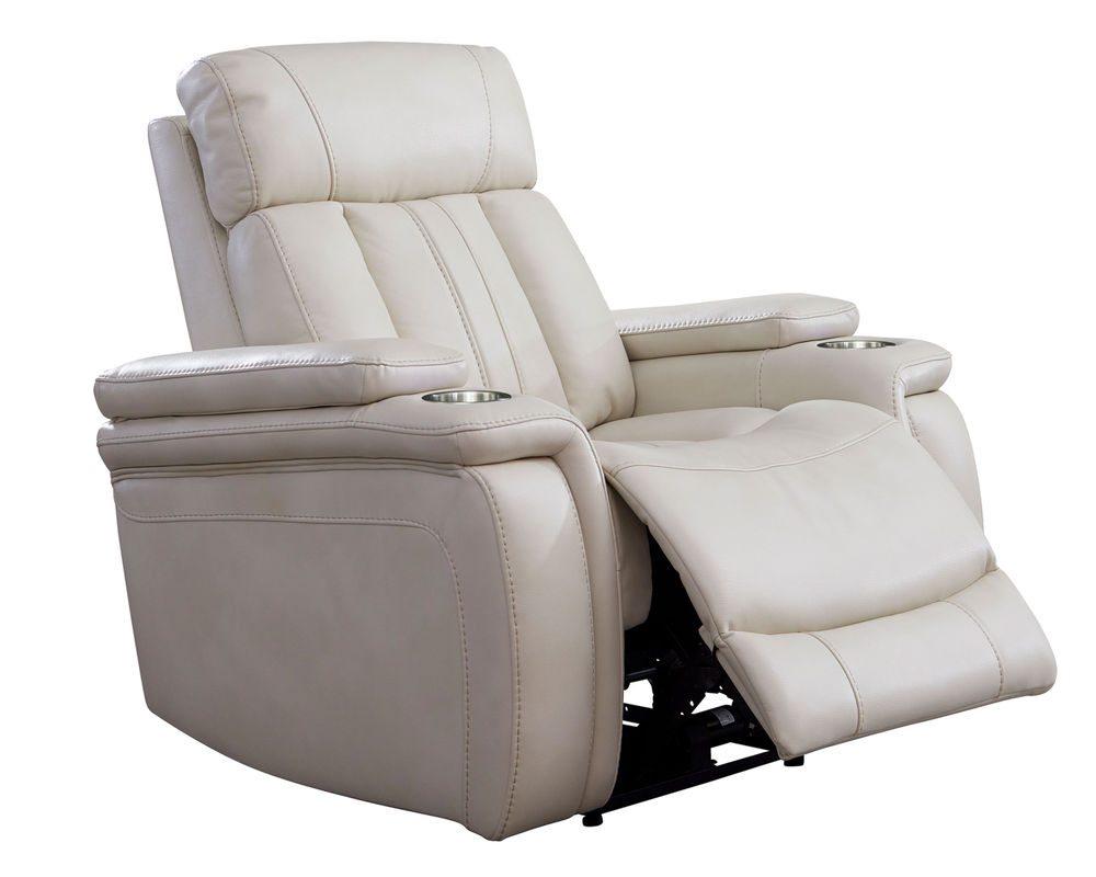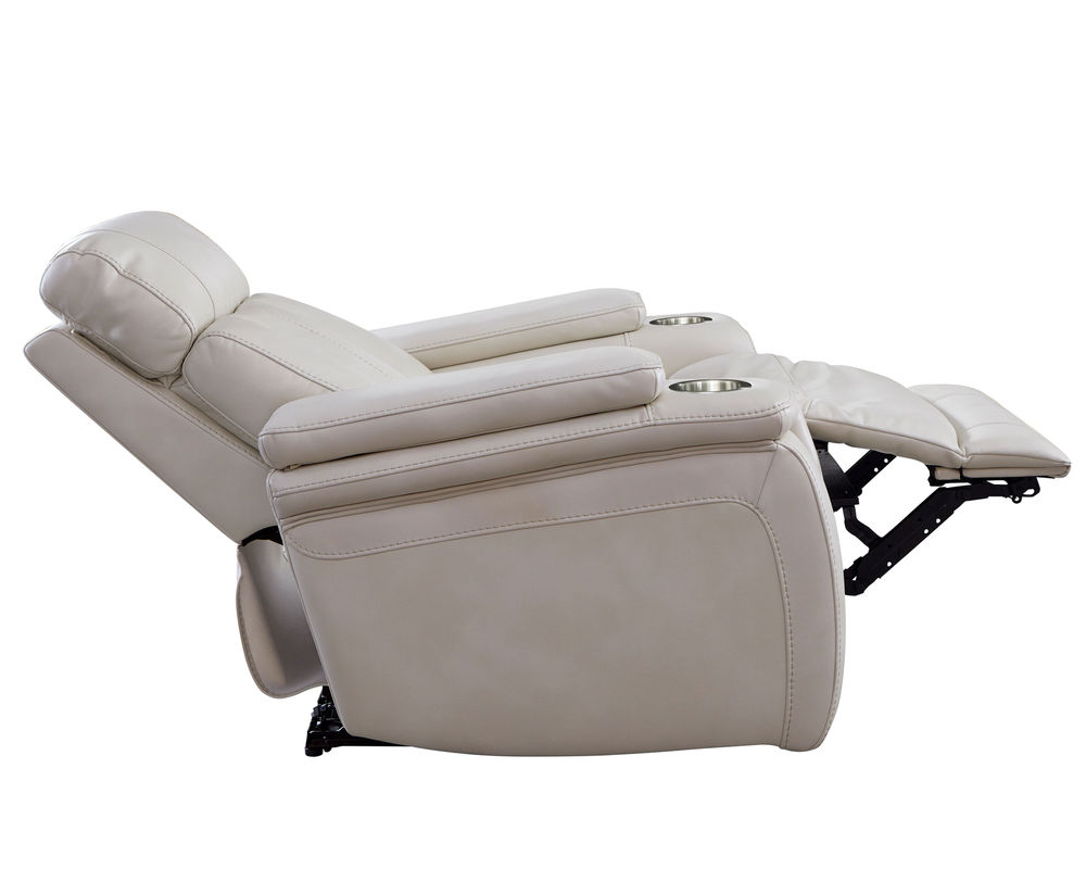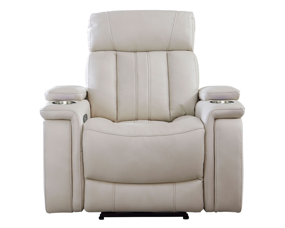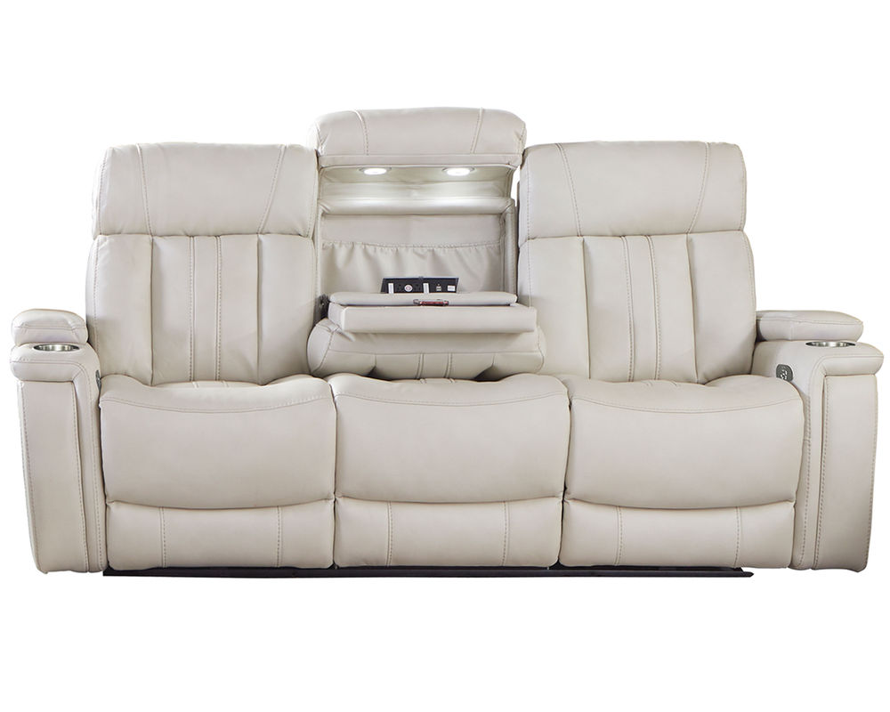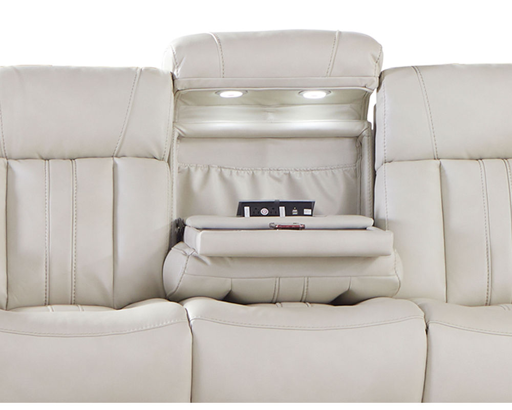 The Royce sofa is a hub of innovation. It features a drop-down console with AC, USB, and a wireless charging pad, creating the perfect spot to work or relax without worrying about outlet proximity. The overhead lights add a touch of ambiance, setting the stage for movie nights or late-night reading.