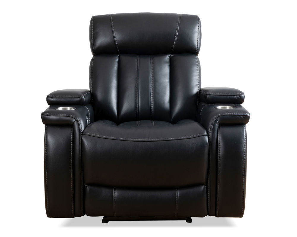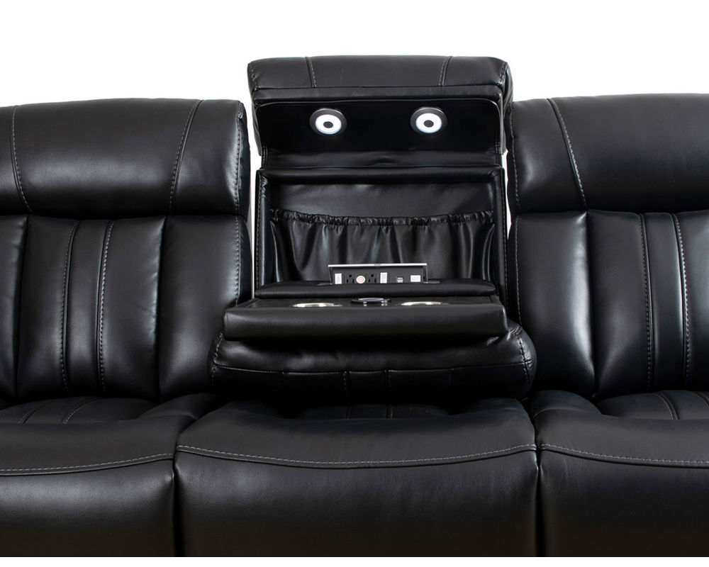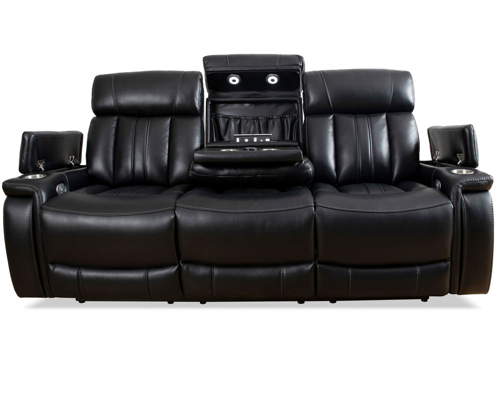 The Royce sofa is a hub of innovation. It features a drop-down console with AC, USB, and a wireless charging pad, creating the perfect spot to work or relax without worrying about outlet proximity. The overhead lights add a touch of ambiance, setting the stage for movie nights or late-night reading.