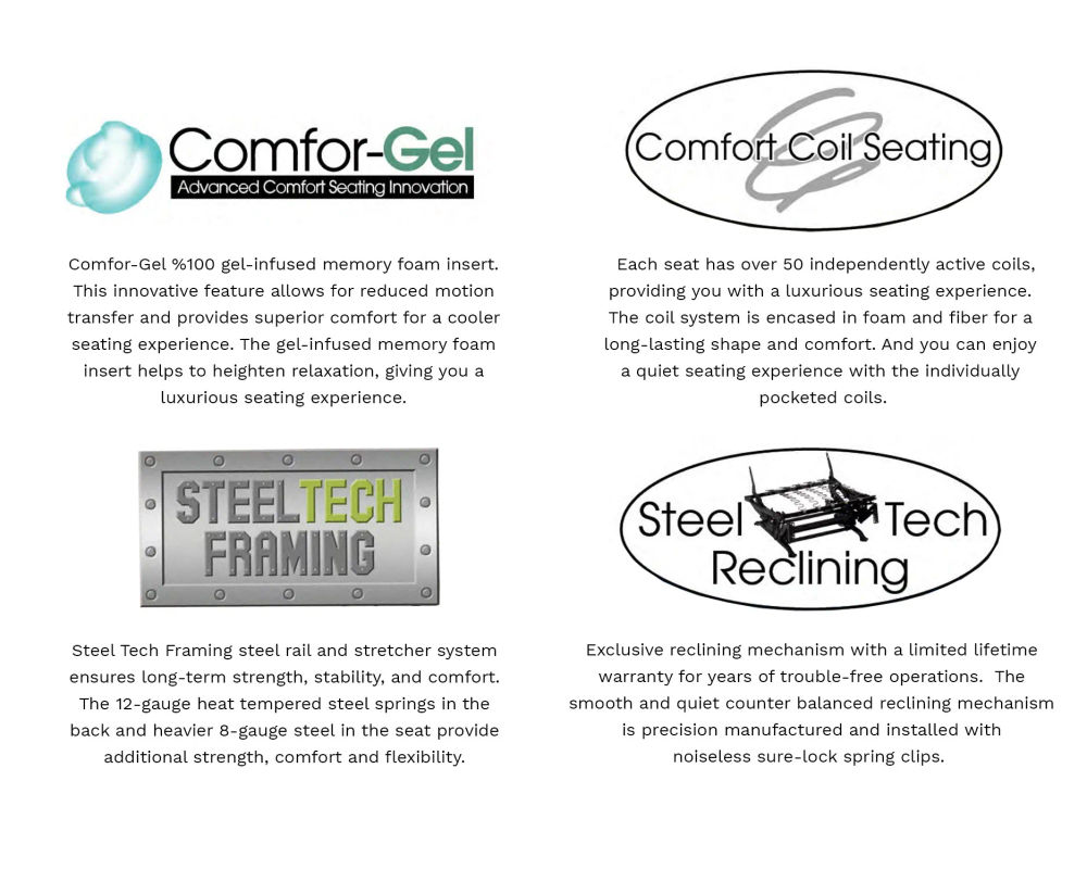 The exclusive steel frame and stretcher system offers long-term strength and stability. Thick tubular steel reinforces the frame and provides a strong foundation. Computer-spaced insulated spring clips keep the furniture quiet and comfortable. Finally, the 8-gauge spring system, designed for relaxation, provides lasting seat strength and comfort.