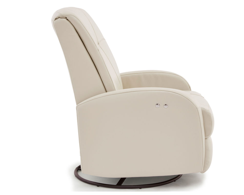 The Ruddick 2A44 Leather Recliner is the perfect addition to any nursery. With its contemporary design featuring straight lines and screaming curves, this recliner will add a modern touch to any space. It can be easily adjusted with its power swivel glider and new age metallic touch buttons, or with its manual swivel glider recliner and outside espresso-colored reclining handle. With over 100 fabrics and a diverse color assortment of top-grain leathers, you will be sure to find the perfect match for your nursery. Comfort and style come together with the Ruddick 2A44 Leather Recliner, making it an ideal choice for your home.
