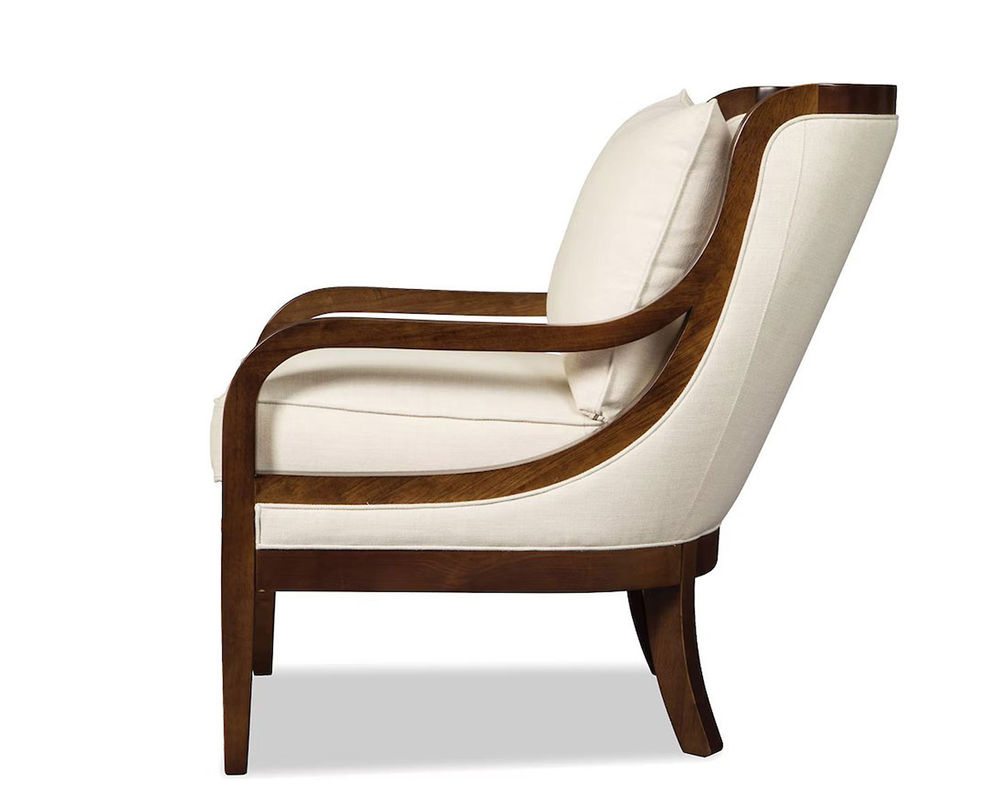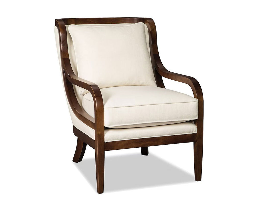 This Salem 67410 Accent Chair is a beautiful and timeless piece of furniture. The rich wood detailing creates a classic, elegant look that can be tailored to your individual tastes with any finish and over 100 high performance fabrics. The gentle curves of the upholstery frame the fabric of your choice and offer a beautiful accent to your home. This chair also offers customizable comfort with an ultra plush seat cushion and a loose back pillow. Whether you’re looking to update a room or create a new one, this accent chair is the perfect piece to complete your space.