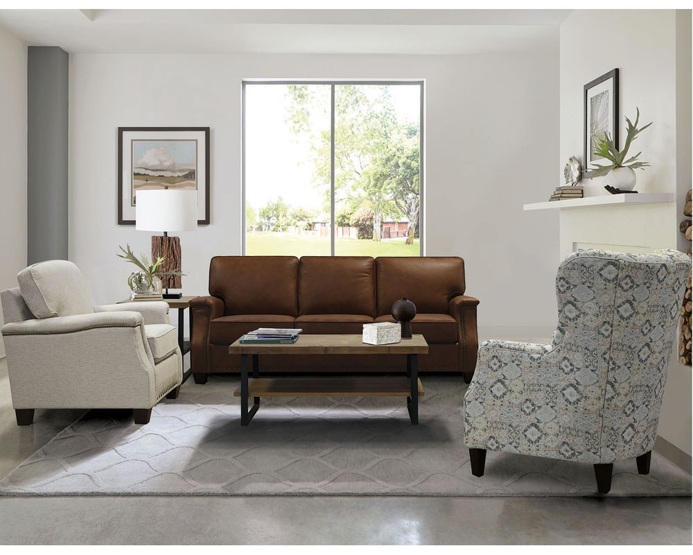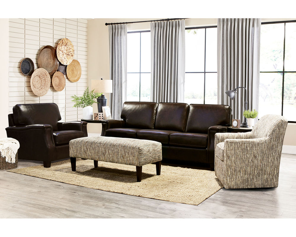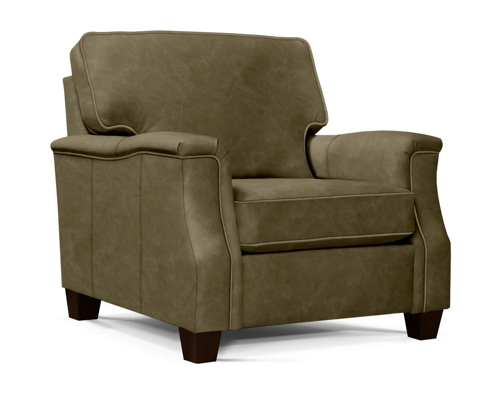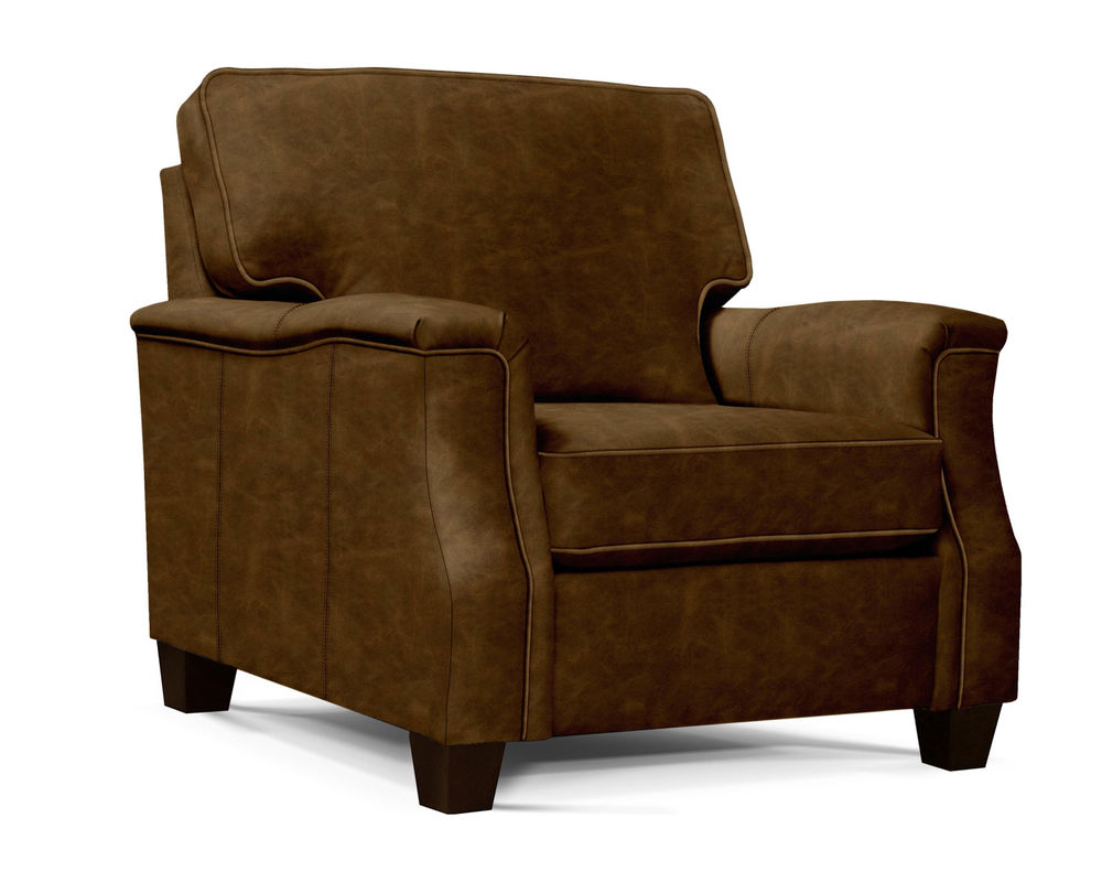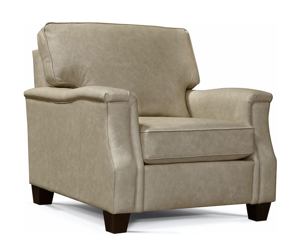 The Salem 5304 Leather Chair is the perfect way to add an elegant touch to your living space. Featuring a unique arm with optional nail head trim, pyramid leg, and plush seat and back, this chair will create a classic look that is sure to stand out. With its durable leather upholstery, the Salem 5304 Leather Chair is designed to last. Its versatile design allows you to customize it with your choice of fabric or leather to create a look that is truly one of a kind. This chair is also available as a sofa, loveseat, and ottoman, making it an ideal seating option for any room in your home. The Salem 5304 Leather Chair will be sure to instantly upgrade your living space.