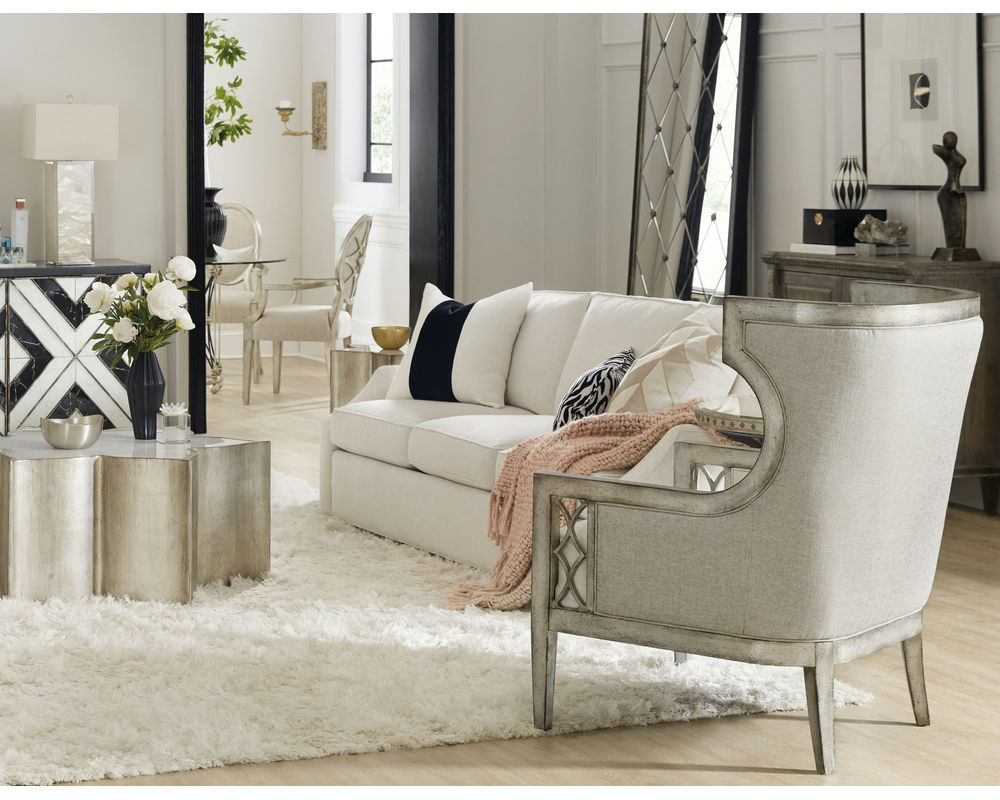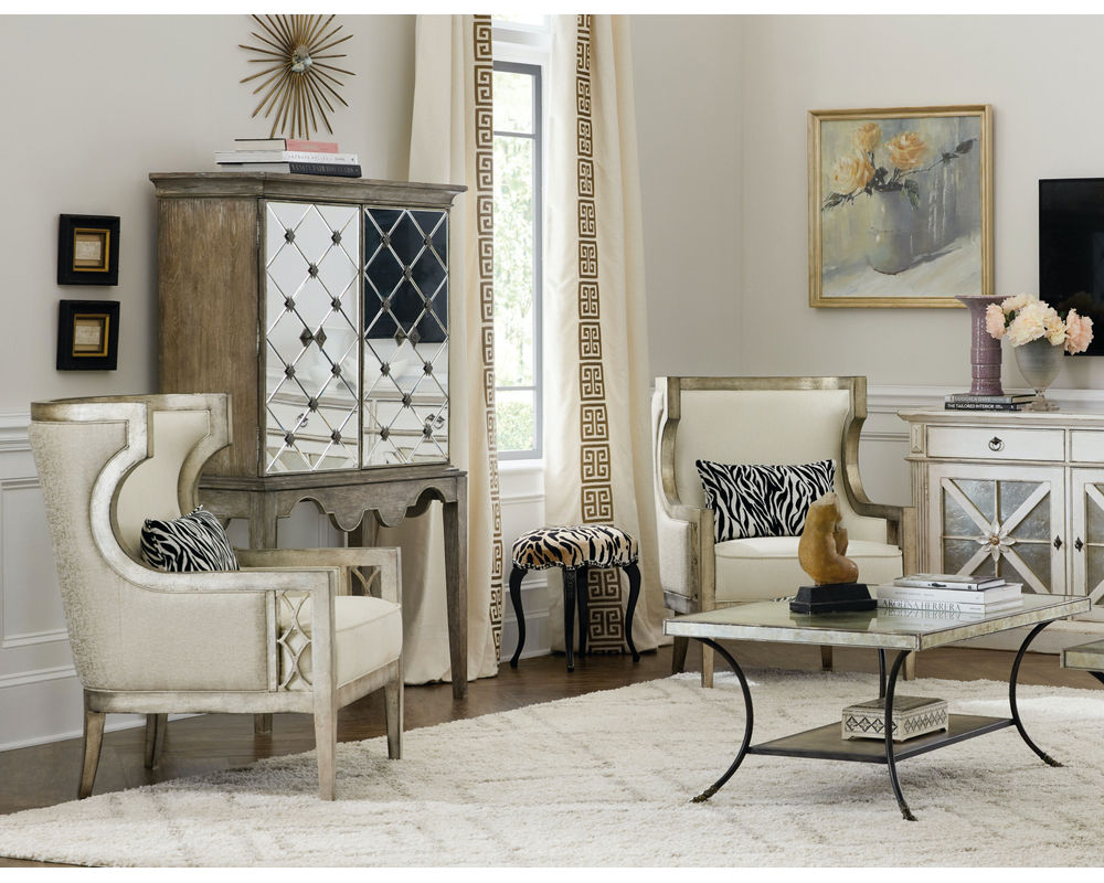 Channeling jet setting socialites from the golden age of Hollywood as its muse, Hooker Furniture is set to launches a major expansion to its popular Sanctuary collection. The bedroom, dining room, occasional and home office pieces are grouped into three unique new personas, each of which embody the influences of the iconic starlets whom left impressions of glamour, charm and class on American pop culture. From bold and dramatic to soft and romantic to a statement-making eclectic lifestyle, the three personas Collette, Anastasie and Diamant effortlessly bring to life a well-traveled socialite who has curated a collection of home furnishings in her metropolitan home that tell the story of her travels across the globe. Anastasie offers a softer, romantic look with its creamy white finish that is accented with champagne and silver tipping. Several historical reproduction styled pieces in a two-tone finish are intermingled throughout, giving the group a bit of a traditional European cottage style. Additional design details include table tops with intricate quatrefoil veneer patterns crafted with oak and a mix of unique walnut inlay, carved chairs with acanthus leaf and scrollwork detailing and champagne tipped eglomise.