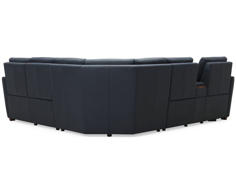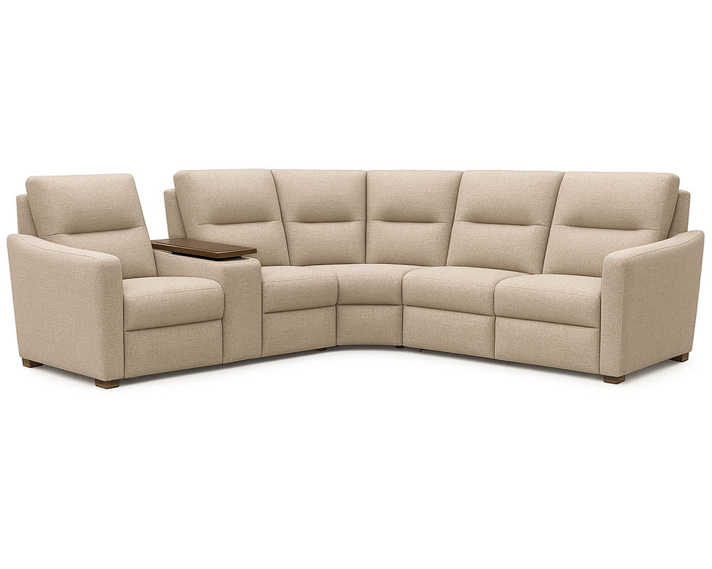 The Sanibel 40111 Reclining Sectional is a perfect blend of style and functionality. Its slightly curved track arm adds a modern touch, while the decorative pull-tuck detail on the seat and footrest adds a touch of elegance. With the option to choose from classic walnut or sophisticated legs and a wood top console, this Sectional can easily complement any living space, making it a versatile choice for all.