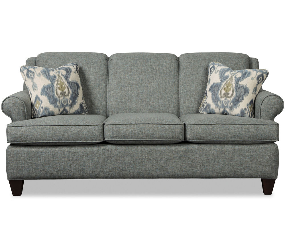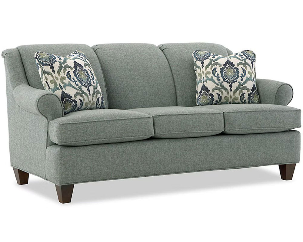 The Santiago 7818 Sofa is the perfect fit for any small space. This classic sofa has a plush tight back and elegant curved wings for a timeless look. It measures 73" in length and features a simple sock arm and tapered legs. For added convenience, this sofa is also available as a full-size sleeper. You can also complete the look with the matching loveseat, chair, and ottoman. You have an incredible selection of over 100 High-Performance fabrics to choose from. With the Santiago 7818 Sofa, you can create a cozy living room that's both comfortable and stylish.