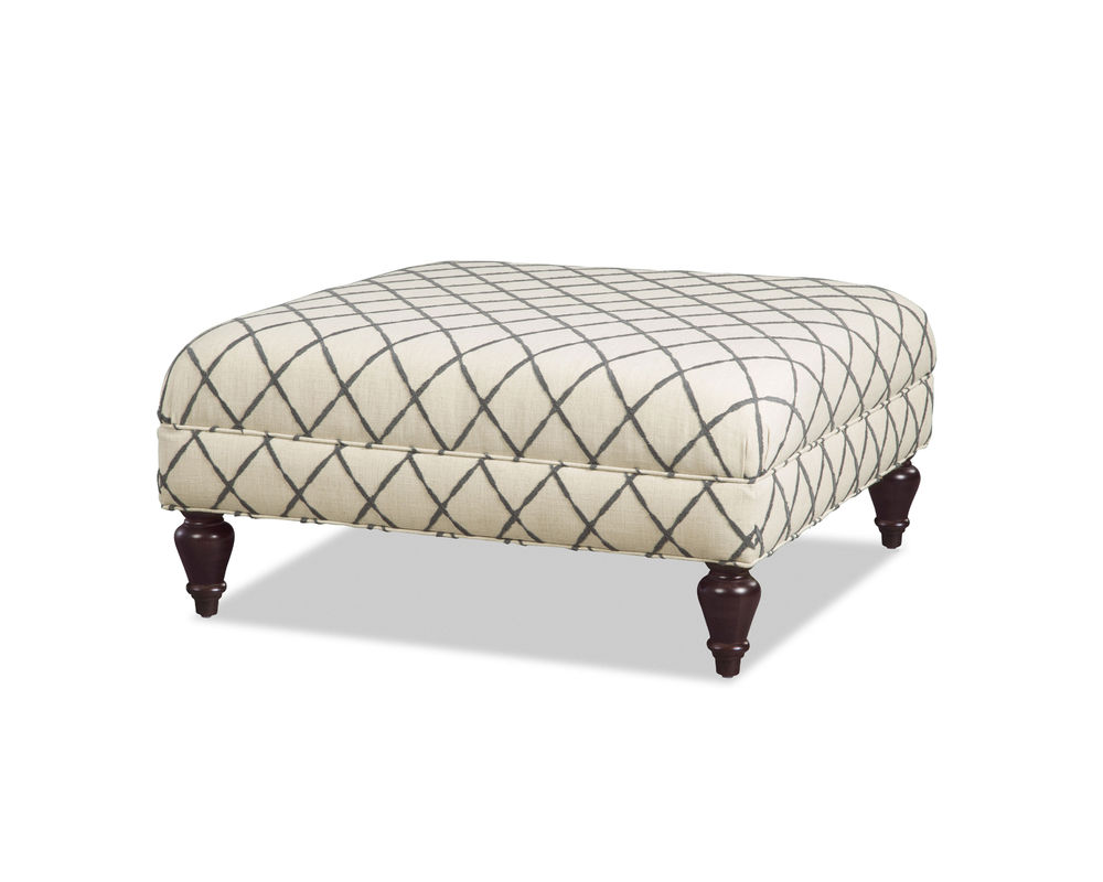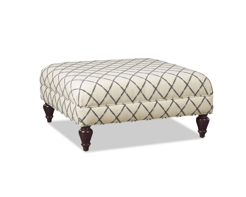 Introducing the Sarah 18200 Square Ottoman – the perfect piece of furniture for making a statement in any room. This lovely cocktail ottoman is perfectly square and features tapered turned legs and a banded base, making it a stylish and sophisticated addition to any home. The Sarah 18200 Square Ottoman is available in over 100 high performance fabrics and 15 wood finishes, allowing you to customize it to fit your unique home décor. Whether you're looking to add a modern feel to your living room or a touch of elegance to your bedroom, the Sarah 18200 Square Ottoman is the perfect choice. Its versatile design and quality craftsmanship make it a timeless piece that you'll enjoy for years to come.