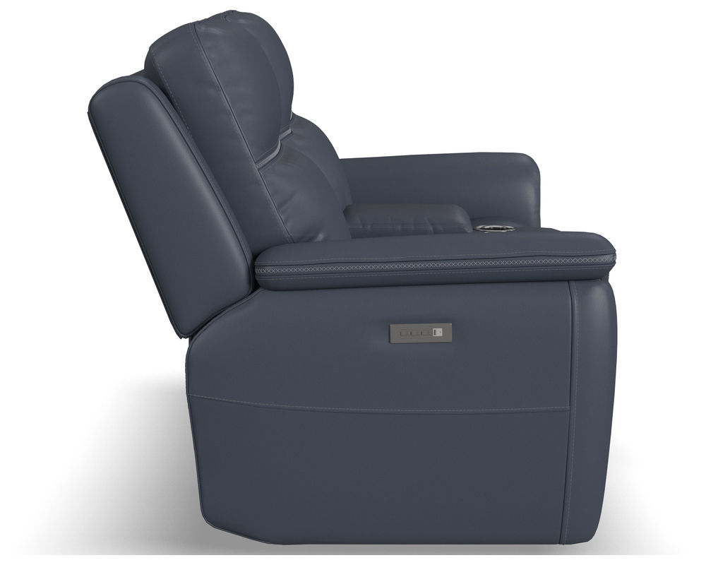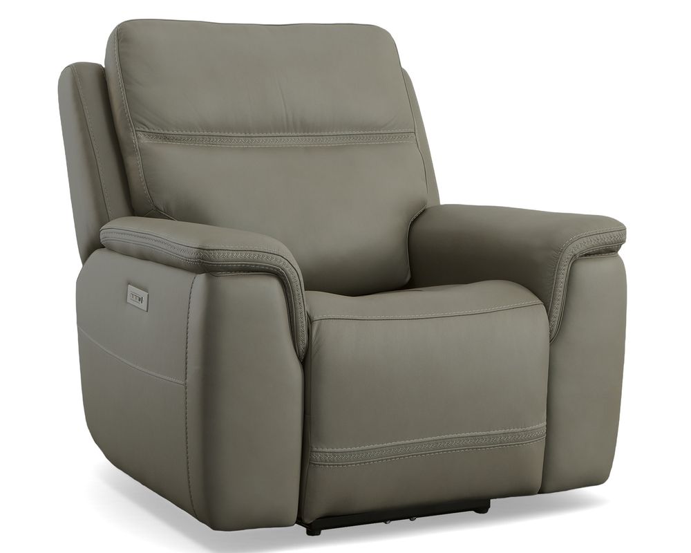 Make a move for your well-being with the Sawyer Power Recliner with Power Headrest and Lumbar. Designed to offer head-to-toe comfort, Sawyer features our Zero Gravity technology, which reduces pressure and gives you a feeling of weightlessness. Want to watch TV while you're relaxing? Use the power control to independently adjust the headrest and recline. The control adjusts the lower lumbar too, which offers enhanced support for your lower back. A convenient USB charging port is included in the control, so you can keep devices powered up and ready to use. With Sawyer, you'll stay comfortable for hours with the recliner's contoured seat cushion with waterfall chaise, and pad-over arms that relieve tension in your forearms. Cross-stitching on the arms and back has a refined look and enhances durability. Sawyer offers lasting quality with our patented Flexsteel DualFlex Spring System™, which ensures that the seat will stay firm and flexible for years to come. To create a look that will complement your decor, choose from two premium leather options.