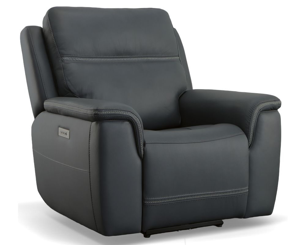 Make a move for your well-being with the Sawyer Power Recliner with Power Headrest and Lumbar. Designed to offer head-to-toe comfort, Sawyer features our Zero Gravity technology, which reduces pressure and gives you a feeling of weightlessness. Want to watch TV while you're relaxing? Use the power control to independently adjust the headrest and recline. The control adjusts the lower lumbar too, which offers enhanced support for your lower back. A convenient USB charging port is included in the control, so you can keep devices powered up and ready to use. With Sawyer, you'll stay comfortable for hours with the recliner's contoured seat cushion with waterfall chaise, and pad-over arms that relieve tension in your forearms. Cross-stitching on the arms and back has a refined look and enhances durability. Sawyer offers lasting quality with our patented Flexsteel DualFlex Spring System™, which ensures that the seat will stay firm and flexible for years to come. To create a look that will complement your decor, choose from two premium leather options.