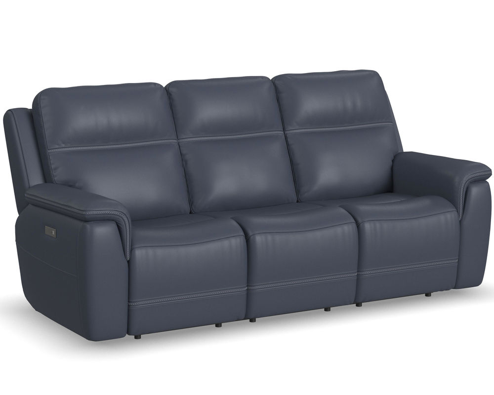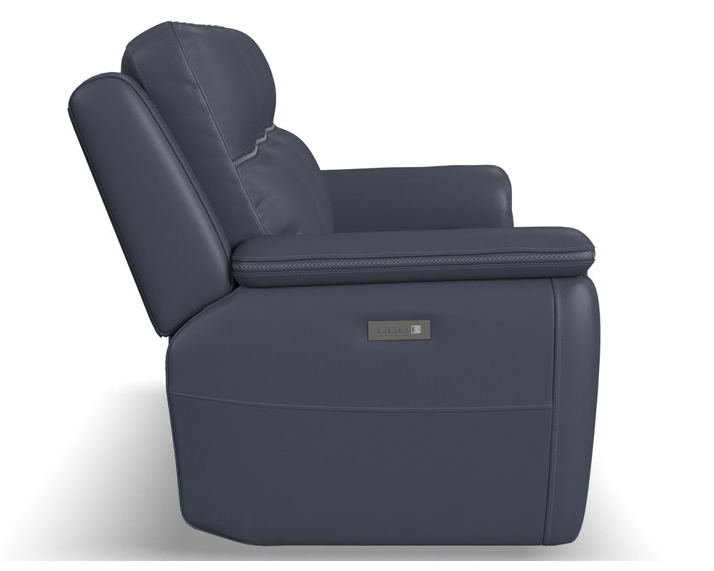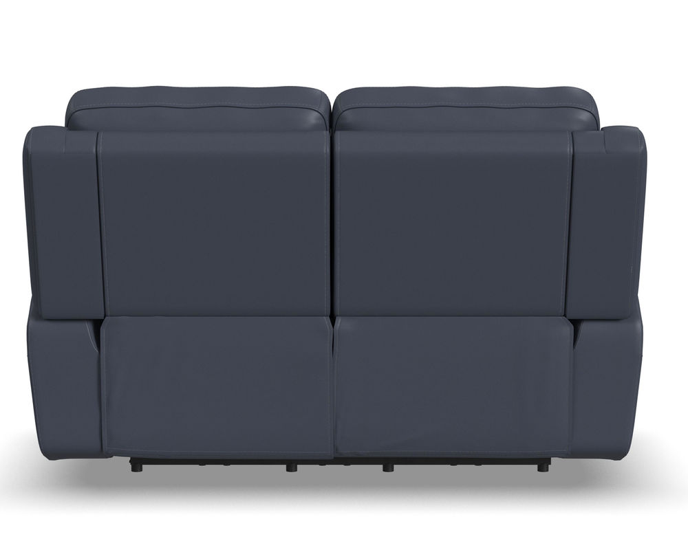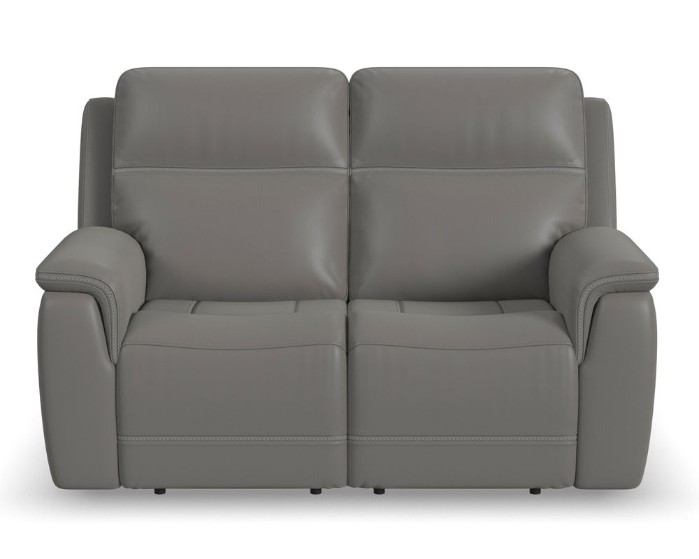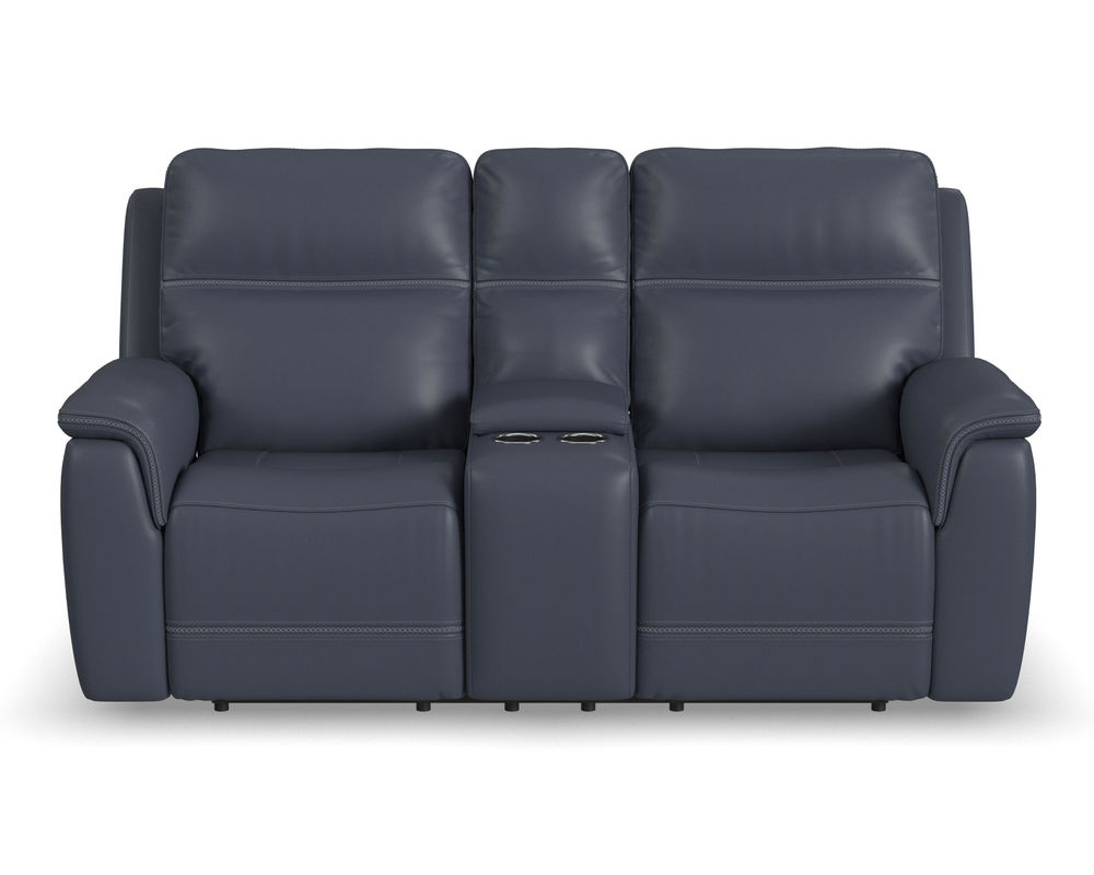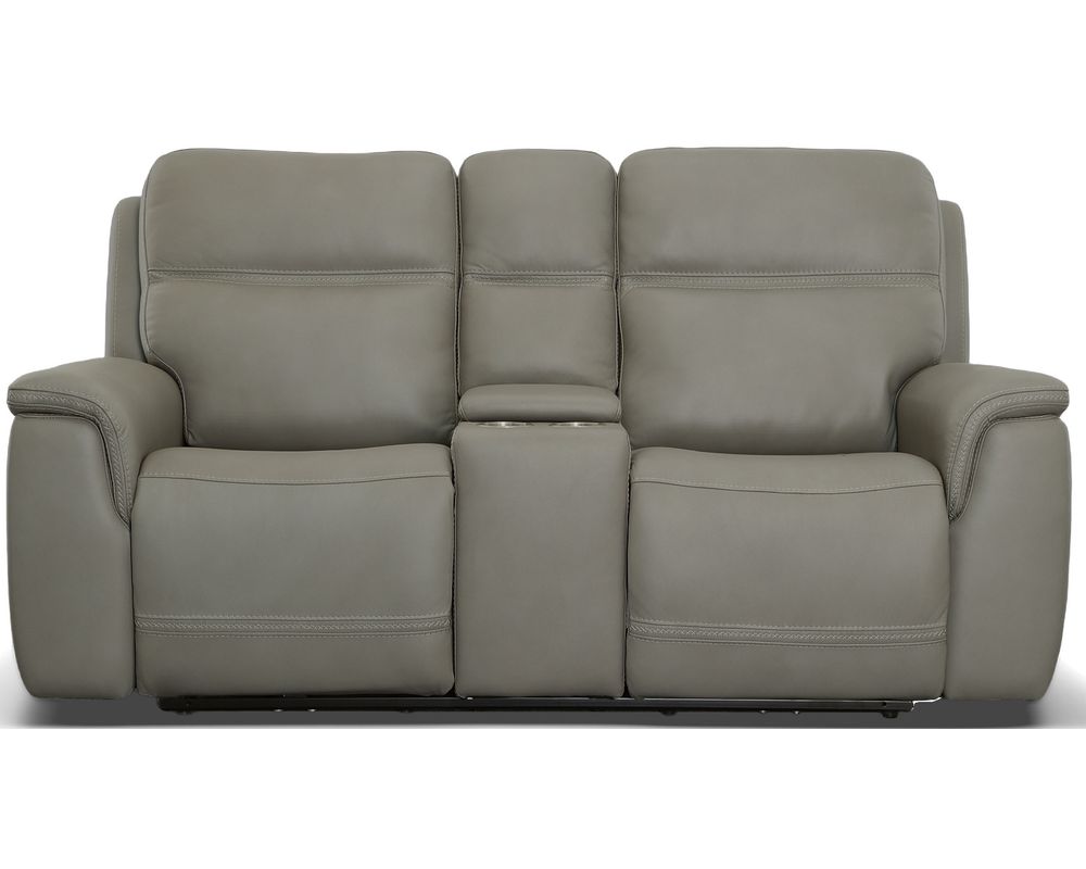 Enjoy a cozy night in with the Sawyer Loveseat with Console and Power Headrests and Lumbar. Designed to make relaxation a breeze, this ergonomic loveseat has a storage console with beverage holders and plenty of space to keep remotes and personal items within reach. When you're ready to lean back, experience the feeling of weightlessness with our Zero Gravity technology, which relieves pressure on your body. Using the power control located on each arm, you can independently adjust the recline, headrests and lumbar. Both people sitting can find the perfect position to relax while watching TV or having a conversation. And with USB charging ports built into the power controls, you won't have to worry about keeping devices powered up. Additional ergonomic enhancements include a contoured seat with waterfall chaise and pad-over arms that relieve tension in your forearms. Cross-stitching on the arms and back has a refined look and enhances durability. Our patented Flexsteel DualFlex Spring System™ offers a mix of firmness and flexibility as you sit and ensures comfort for years to come. Choose from two leather upholstery options to create a look that blends with your home decor.