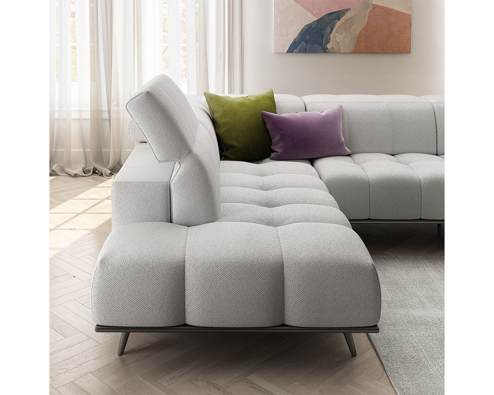 Expertly handcrafted in Italy, this stationary sectional offers deep, generous seating and manually adjustable headrests that adapt effortlessly to your preferred level of support. The sleek wooden base in your choice of walnut or wengé finish adds warmth and refinement, grounding the modern aesthetic in timeless Italian style. Available in Top Grain leather or 45 standard and high-performance fabrics, Scacco combines versatility with the elegance of true craftsmanship.