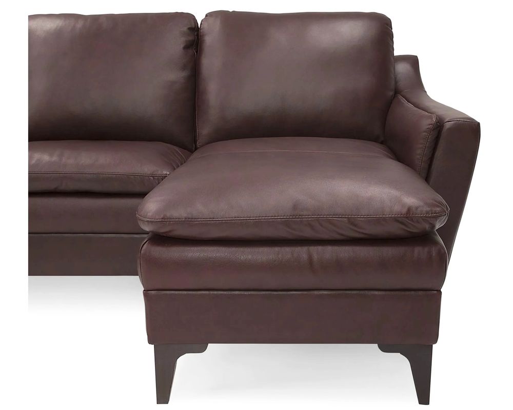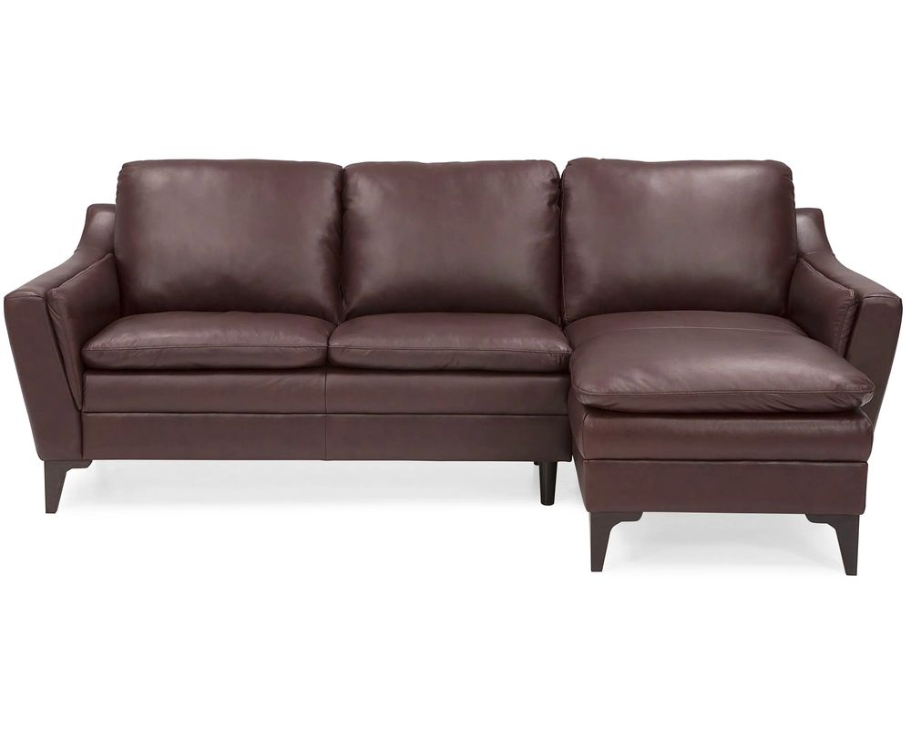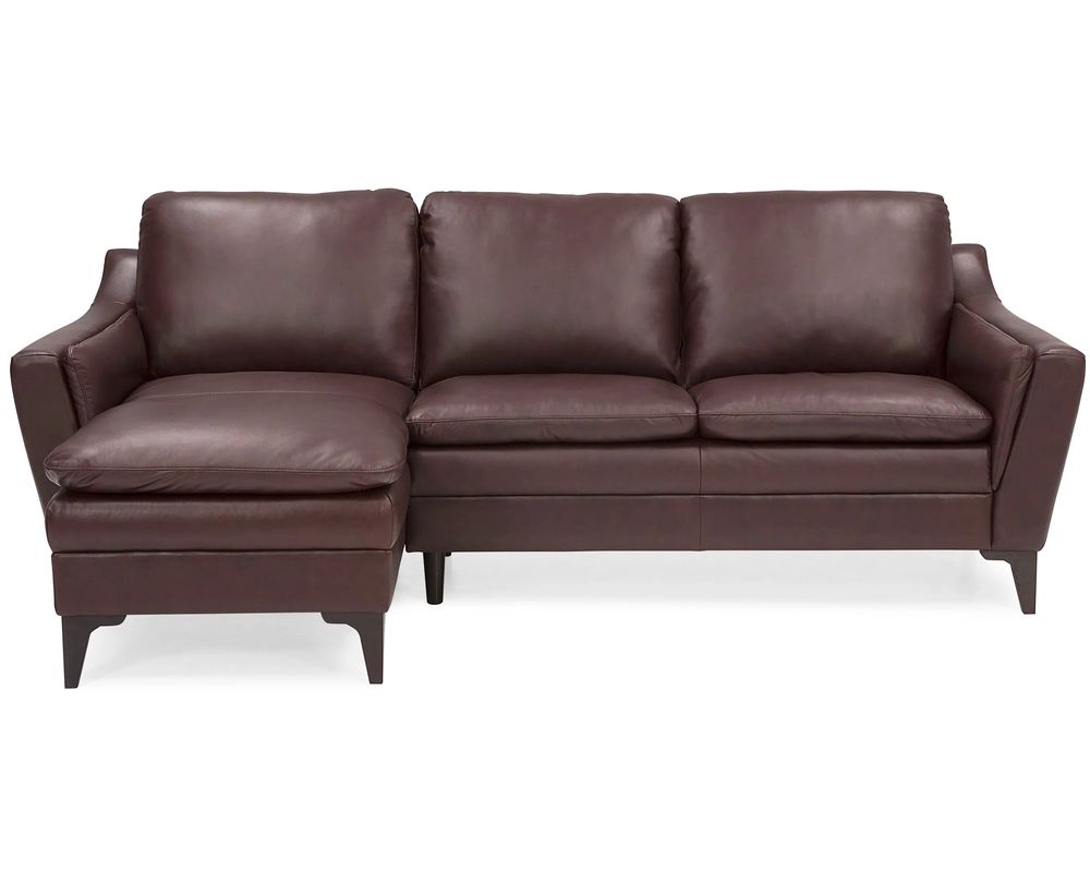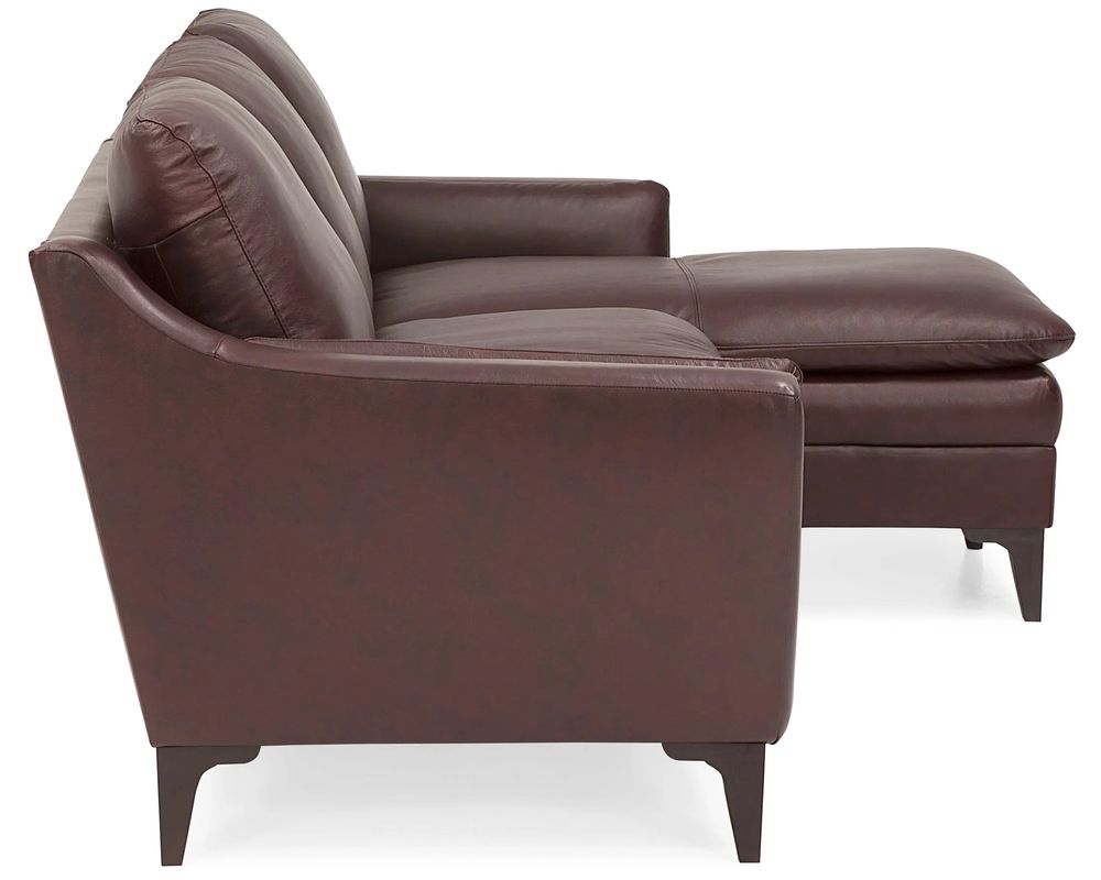 The Balmoral 77748 Leather Sectional is a stunning addition to any home. Its sleek and slender design effortlessly combines modern and traditional elements, making it a versatile choice for any living space. Whether your home is a cozy apartment or a spacious house, this sectional can adapt to your unique living space. The armrests are thoughtfully padded for maximum lounging comfort, while the soft, blown-fibre back cushions provide a cozy and inviting feel. The slightly flared arms and thin cushion profile give this sectional an elegant and luxurious look.