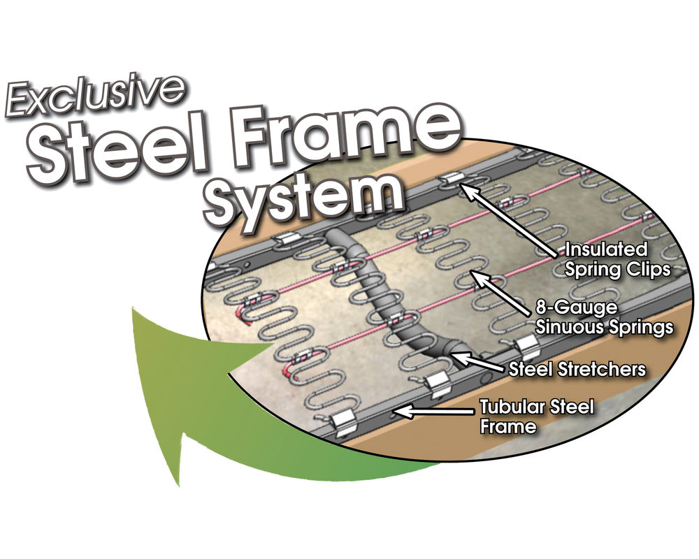 • Exclusive Steel Tech framing steel rail and stretcher system so your frame never breaks