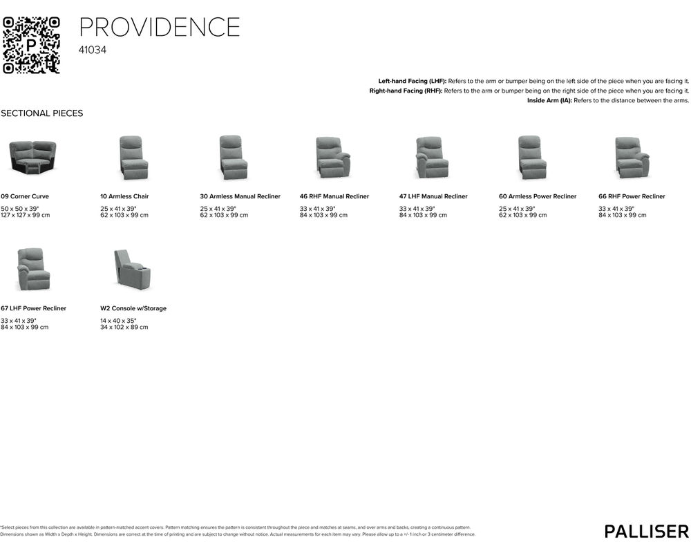 The backrest is divided into two sections to conform to the contours of your spine, supported by premium elastic webbing for maximum support and comfort. The seats are equally comfortable and supportive, thanks to their 8-gauge sinuous wire springs. Recliner pieces in this sectional range are offered with and without power mechanisms. With the Providence 41034 Reclining Sectional, you can create your own stylish, luxurious seating area.