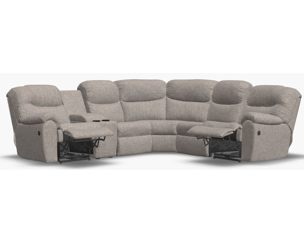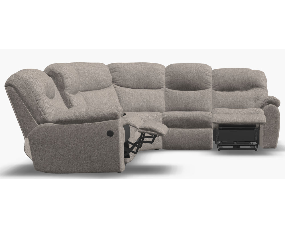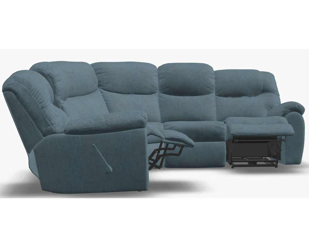 Introducing the Regent 41094 Reclining Sectional, the epitome of comfort and opulence. This stunning collection boasts plush arms, dual back cushions, and a full chaise footrest, delivering unparalleled support and relaxation. You can choose between manual or power activation for the reclining mechanism, allowing you to customize the sectional to your specific needs and preferences. Its timeless design makes it a perfect fit for any living room, adding a touch of sophistication and luxury. It will undoubtedly become the focal point of your space, exuding style and elegance. Crafted with the utmost attention to detail, the Regent offers superior comfort and quality, providing the perfect spot to unwind and rejuvenate.