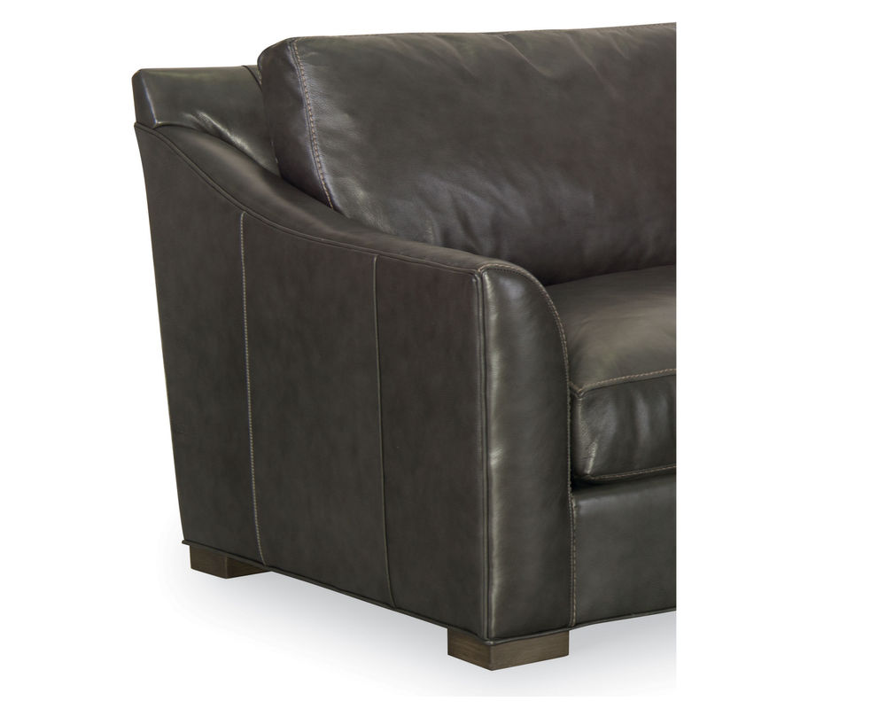 The Fisher Sectional boasts a sleek, sloping flared arm design that adds a touch of elegance to its overall contemporary aesthetic. The solid wood block feet provide sturdy support and enhance the sectional's modern appeal, making it a perfect fit for any modern or transitional home.