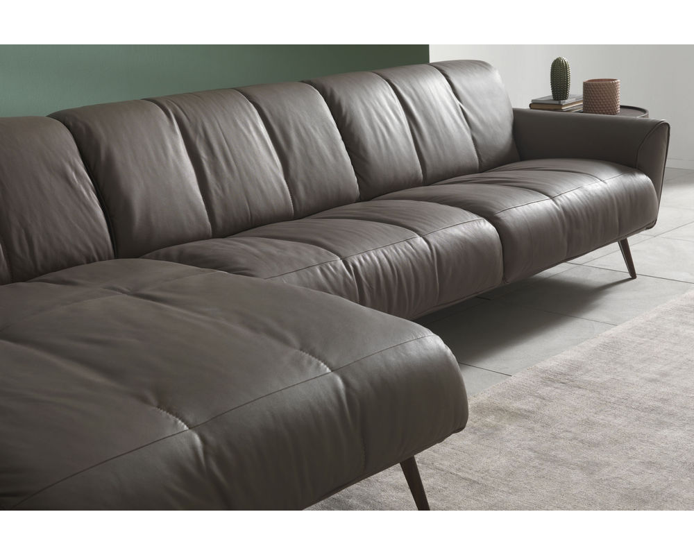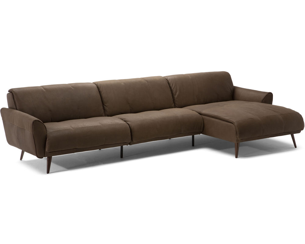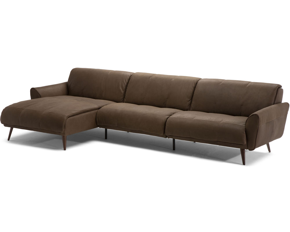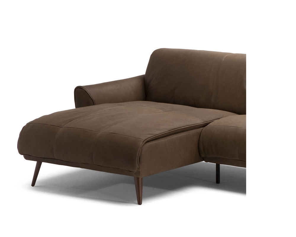 A perfect transitional furnishing for your modern, transitional, or traditional space, the Talento B993 100% Top Grain Leather Sectional is a handsome sectional that takes its cues from conventional design styles with a few modern accents. It is stripped down and minimalistic, providing a simple way to incorporate it into any room. This sectional sofa features two standard seats with ultra-wide seats and back cushions to accommodate anyone comfortably. At the Talento Sectional's end is a chaise lounge for stretching out. On either side of this sectional sofa are arms with a slight curve, helping you get settled against the ample armroom they provide. Mid-century modern legs support the Talento B993 Sectional, and the entirety of the furnishing is upholstered in 100 percent top-grain leather.