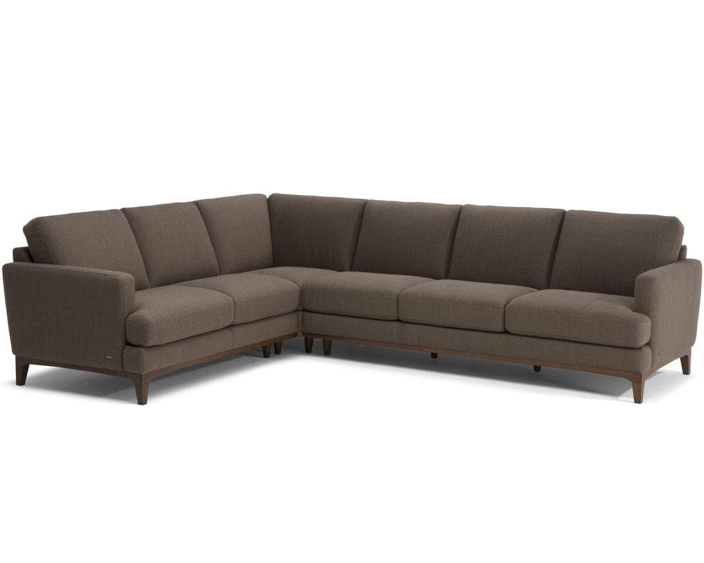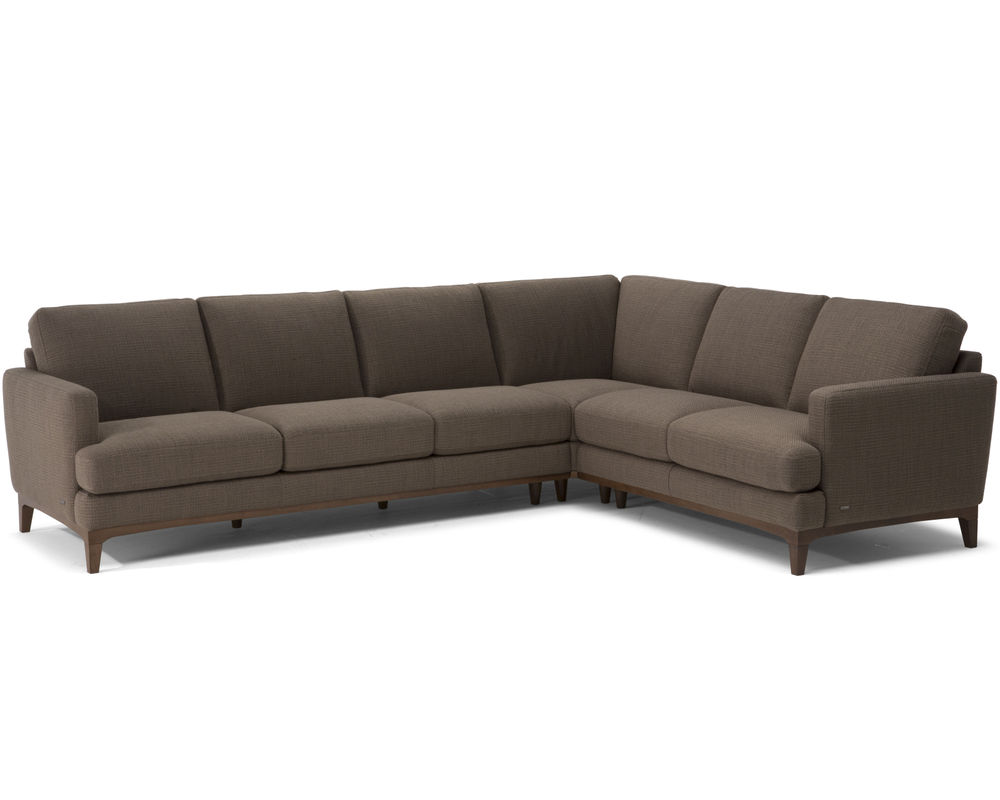 Aptly named, Nostalgia B970 Fabric Sectional is a sectional that takes its cues from nostalgic styles of furniture, keeping classic craftsmanship afloat with modern elements. The Sectional features a classic cushion design that is not attached to the back of the couch. These cushions are plush and stuffed full for your comfort. On either end of the sectional are short track arms. These arms provide you with its classic shape while also offering you a comfortable place to rest.