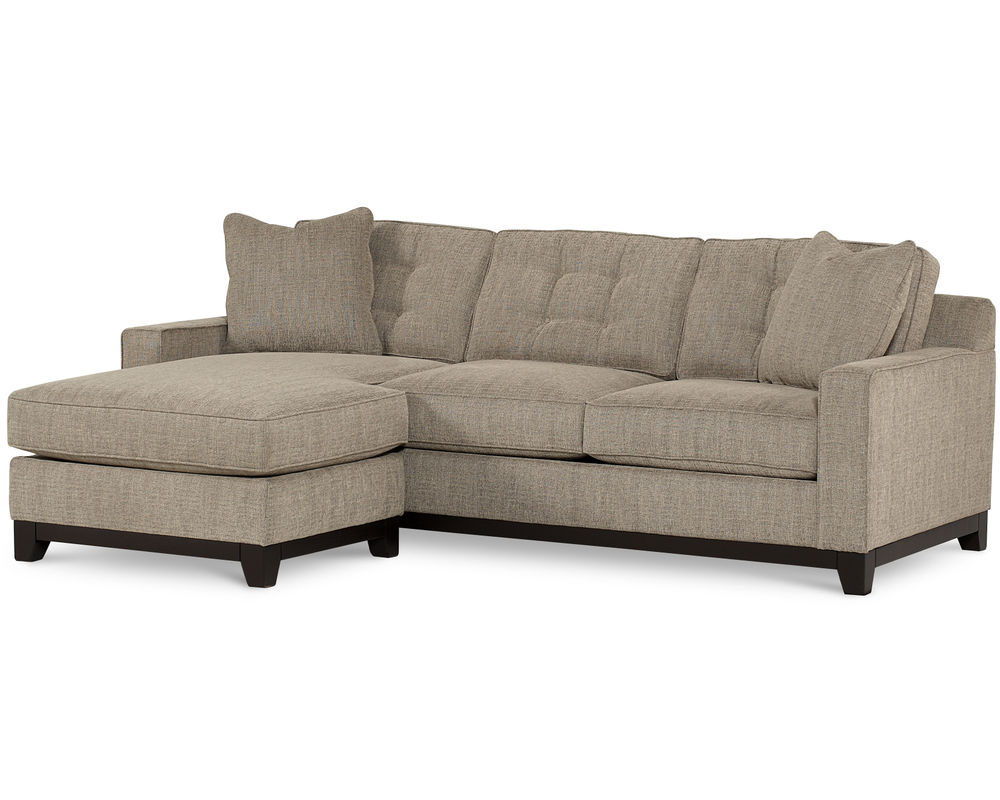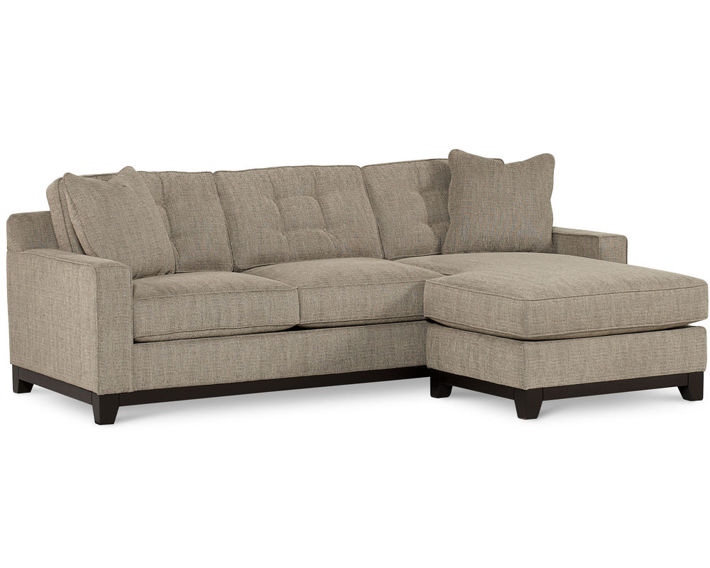 The Clarke Chaise Sofa Sectional is the perfect combination of style and comfort. Its overscaled track arms and loose back button tufted back cushions give it a contemporary yet cozy look. The seat cushions are reversible for longer wearability, and the solid wood base encircles the entire sofa in a deep mocha finish. This sectional includes the 91" sofa, chaise cushion, and ottoman base, and can be reversed to fit the left or right-hand side. Enjoy the comfort and style of the Clarke Chaise Sofa Sectional today.