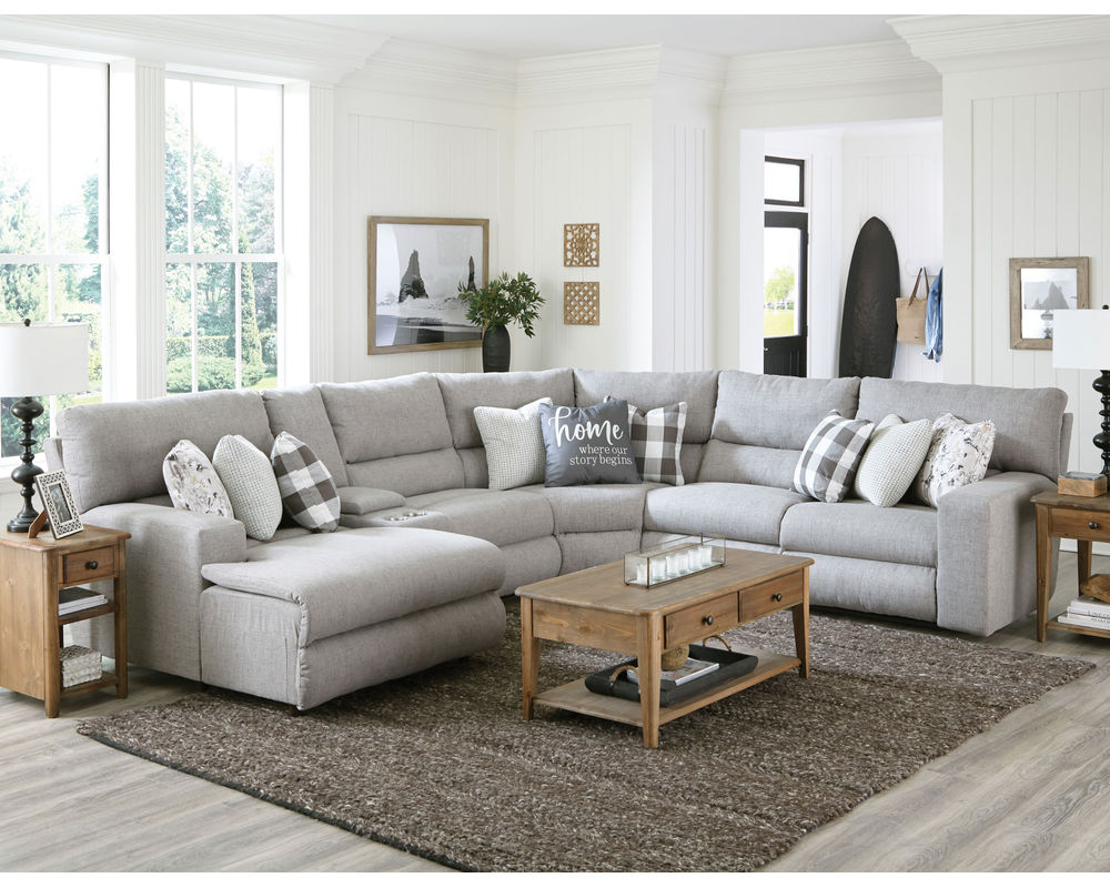 If you’re looking to add comfort and style to your living space, then the Catnapper Furniture Rockport Modular Sectional is the perfect choice. This 11-piece set allows you to create your own custom reclining sectional to fit any space. Choose from either left or right facing power reclining chaise lounges and up to nine accent pillows depending on your configuration. The transitional styling features pad over chase comfort for luxurious comfort. Now on sale, this Catnapper Furniture set is the perfect way to add comfort and style to your home.