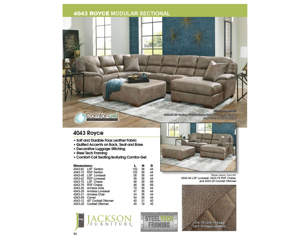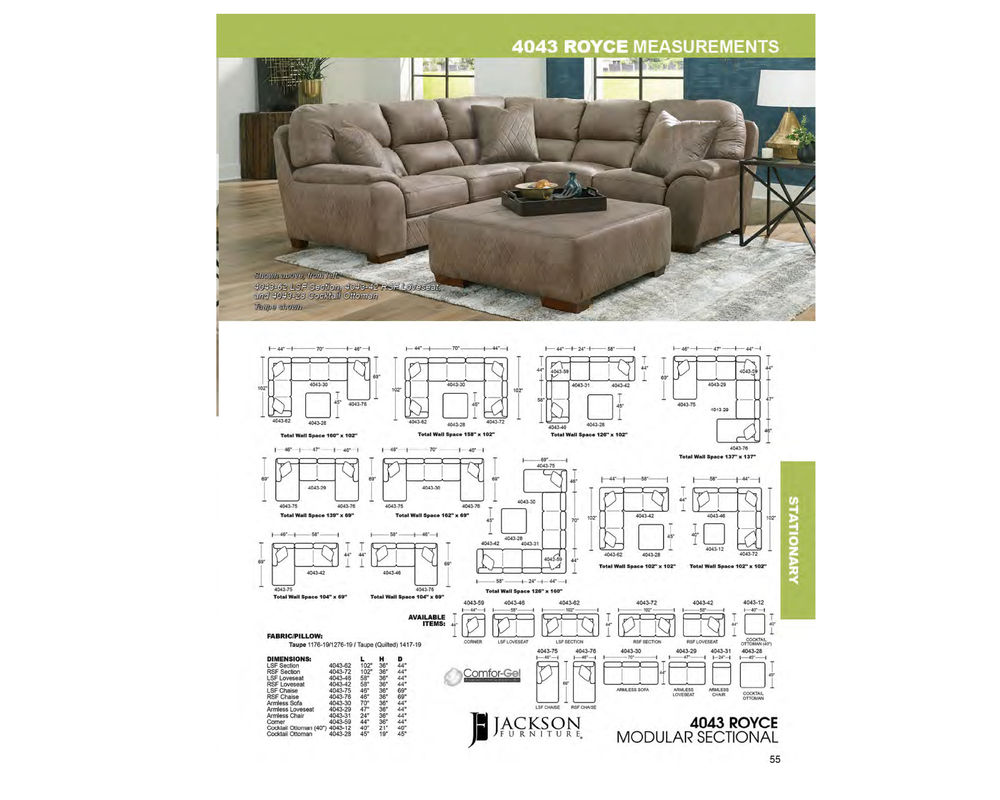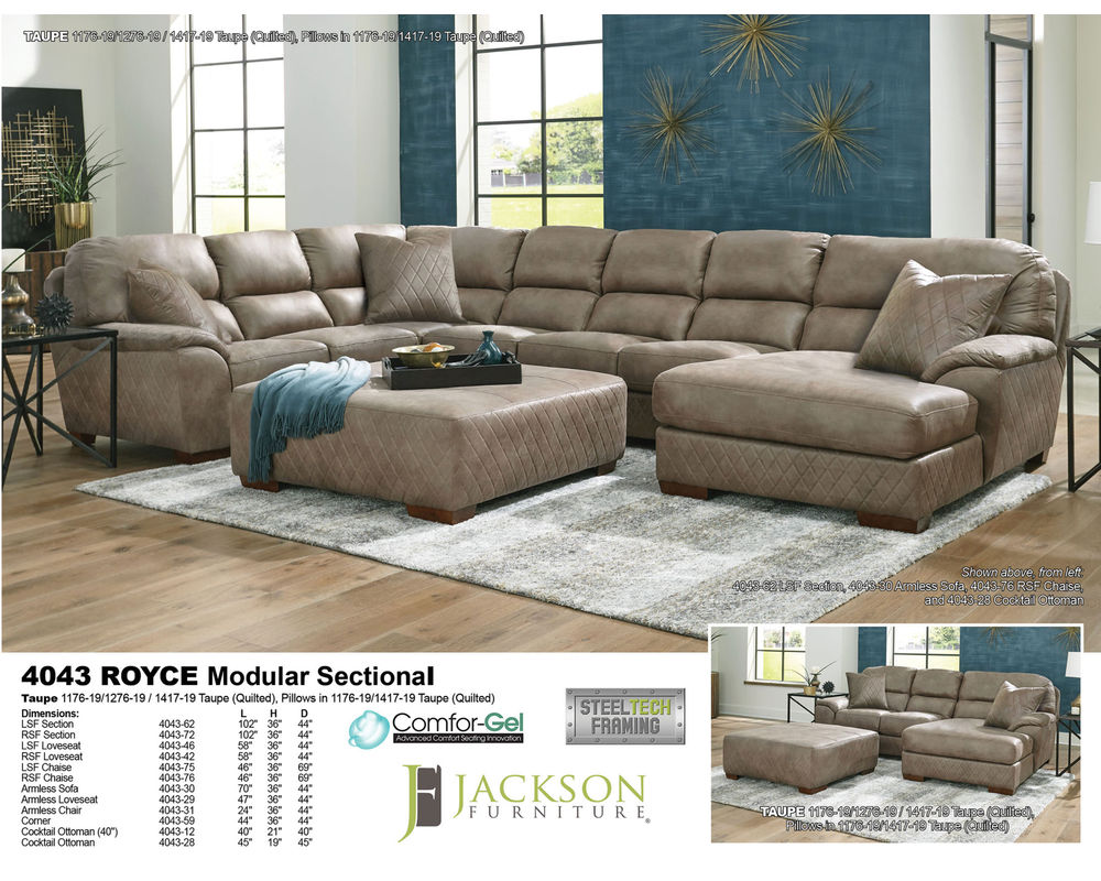 The Jackson Furniture Royce Modular Sectional is the perfect combination of style and comfort. The diamond pattern on the back, seat, and sides of the sectional gives it a unique look and feel. The faux leather-like fabric is both easy to clean and highly durable. With more than 12 pieces, you can create the perfect sectional for your space. With its inviting design, this sectional is sure to become the centerpiece of any room. Whether you are looking to entertain guests or just relax in style, the Jackson Furniture Royce Modular Sectional is the perfect choice.