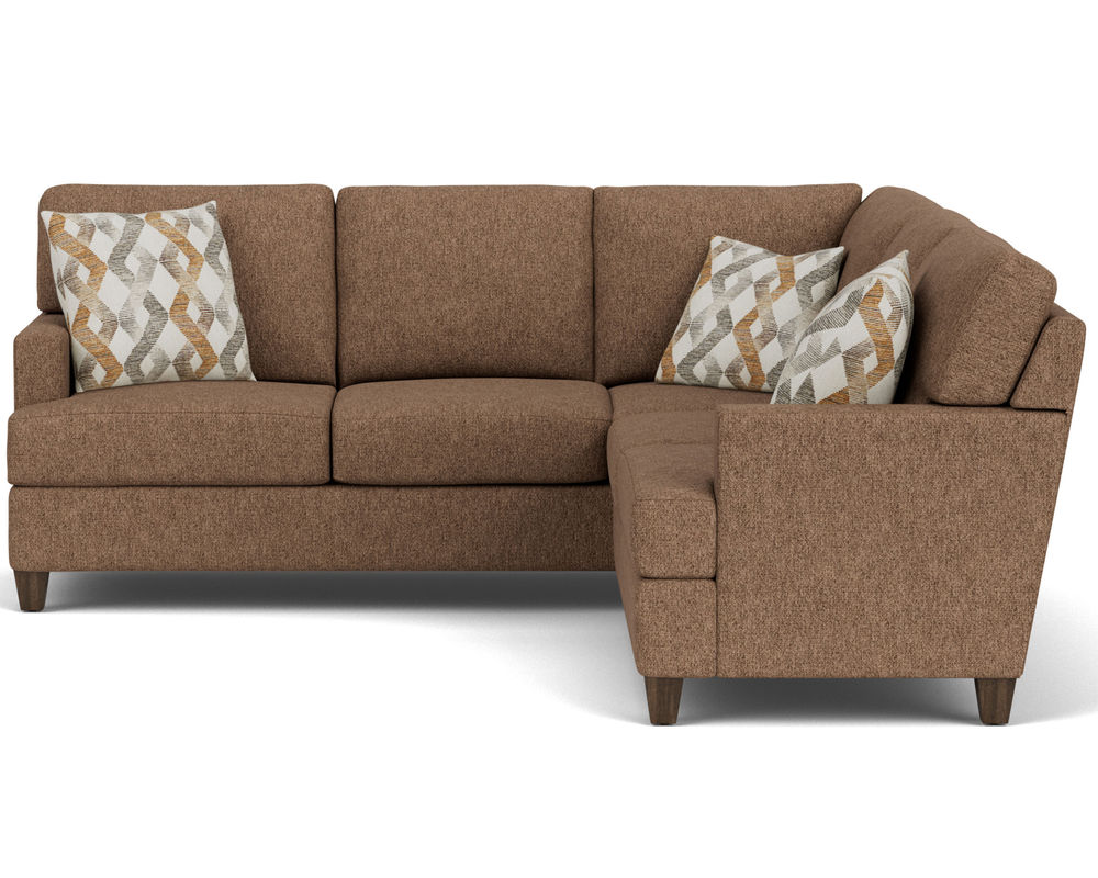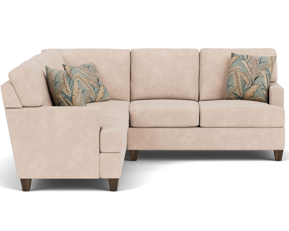 The Flexsteel 5019 sectional is perfect for any style. The track arms provide a clean look, and the square tapered legs come in three distinct wood finishes-Florentine, Valencia, or Urban Renewal-to match any decor. Removable T-shaped seat cushions offer a distinctive look and added comfort. Choose between luxury or plush cushions for the ideal level of support. Complete the look with hundreds of fabric choices, including high-performance and sustainable textiles. The superior frame construction and patented C-Flex Blue Steel Springâ„¢ will ensure that your Flexsteel Sectional can be enjoyed for years to come. With the Flexsteel 5019 sectional, you can be sure to have the perfect design no matter your style.