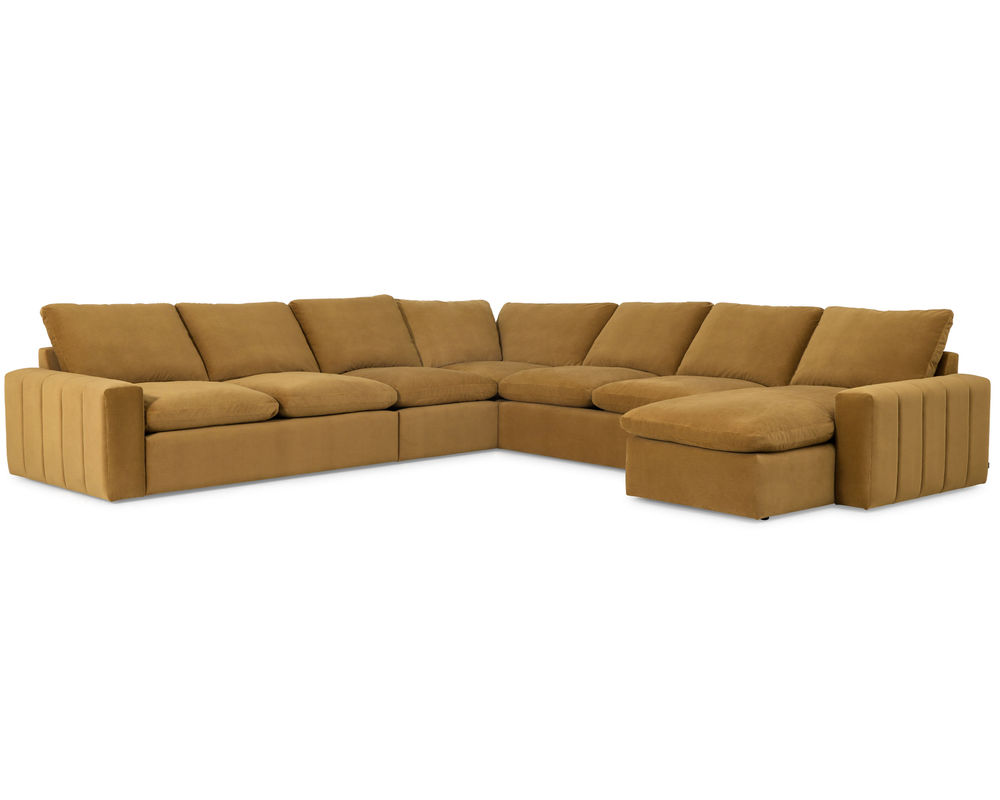 Curl up and relax on the luxurious, deep seating and pillowy soft cushions of the Dawson Sectional. Whether you're enjoying a glass of wine or getting lost in a good book, this sectional provides the perfect spot to unwind and recharge. Over 60 premium fabrics are available.