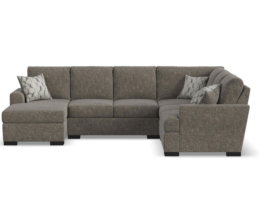 From Sofas and Sectionals.com—Introducing the Willow Stationary Sectional, the perfect combination of comfort and style for your home. This sectional features a deep seat and a modern silhouette, creating a relaxed and inviting atmosphere. Its soft flare arms add a touch of elegance to the overall design.