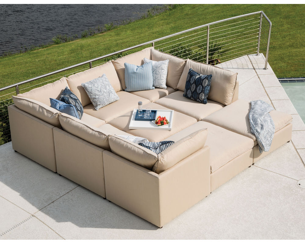 Imagine the possibilities with the Colson Outdoor Modular Section from Lane Venture. This group has unlimited combinations to create the outdoor sectional that is perfect for the size of your outdoor room. The Colson group consists or three pieces - corner chair, armless chair and ottoman. Available in over 70 Sunbrella outdoor fabrics.
